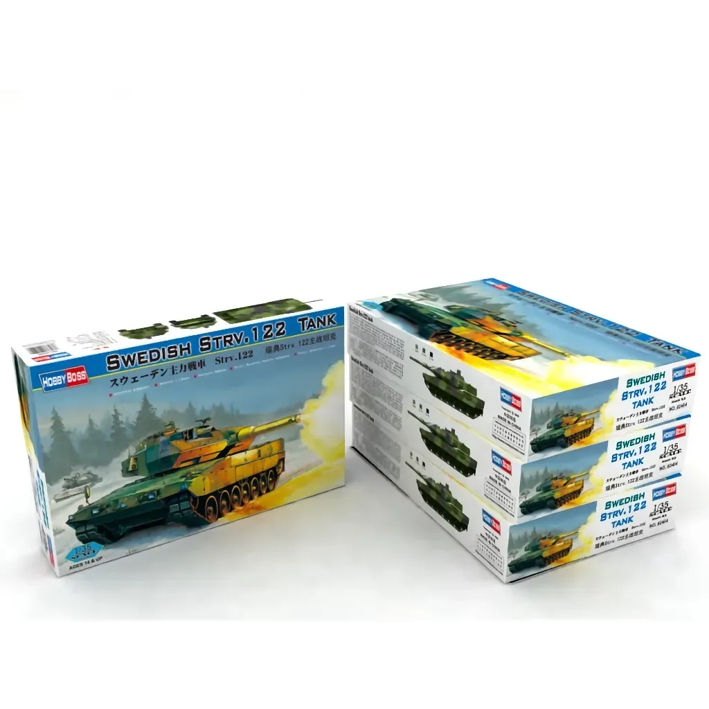 Tank 122 som plastbyggesæt fra Hobby Boss i skala 1:35. Navnet på modellen er Swedish Strv.122 Tank, og Stridsvagn 122 er også kendt som Leopard 2 "Improved" A5 SE eller kort og godt Leopard 2 S.
