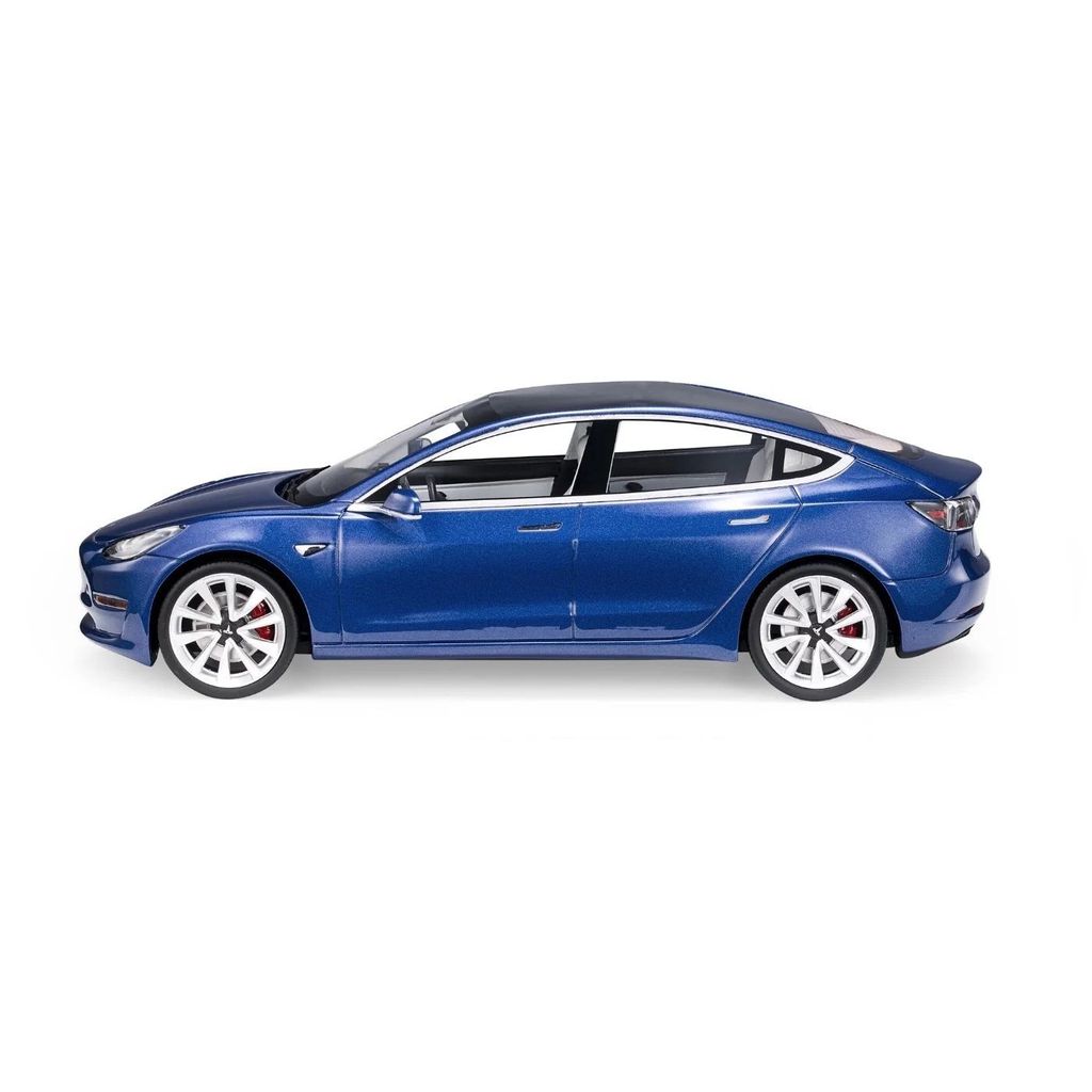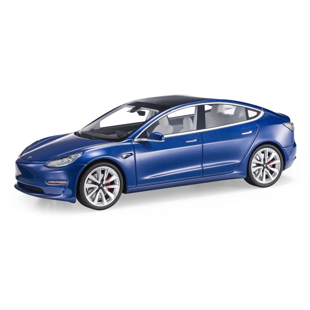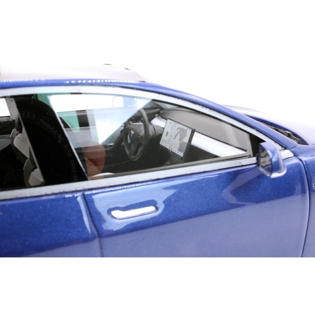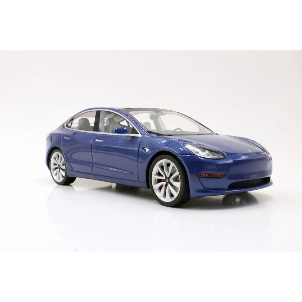 Blå Tesla Model 3 modelbil i skala 1:18 fra LS Collectibles.