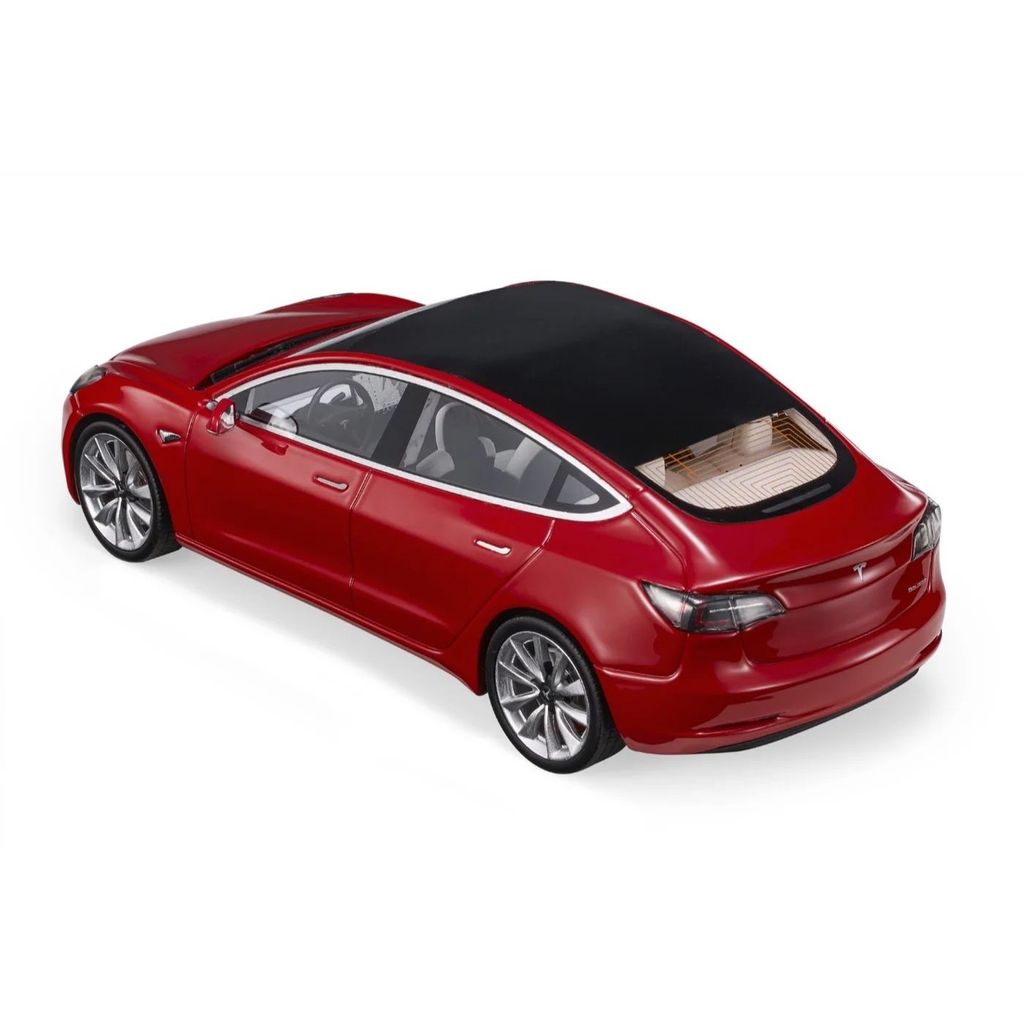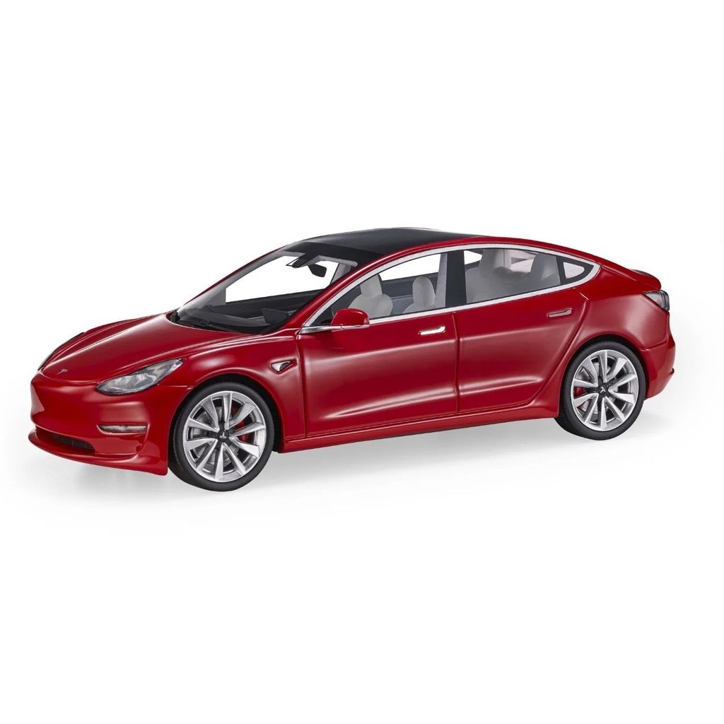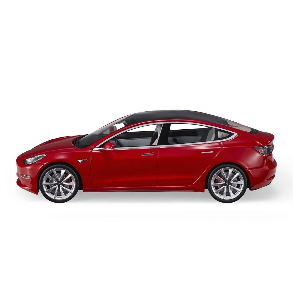Rød Tesla Model 3 modelbil i skala 1:18 fra LS Collectibles. Perfekt pynt i hjemmet eller i garagen, hvis du også har bilen i fuld skala.