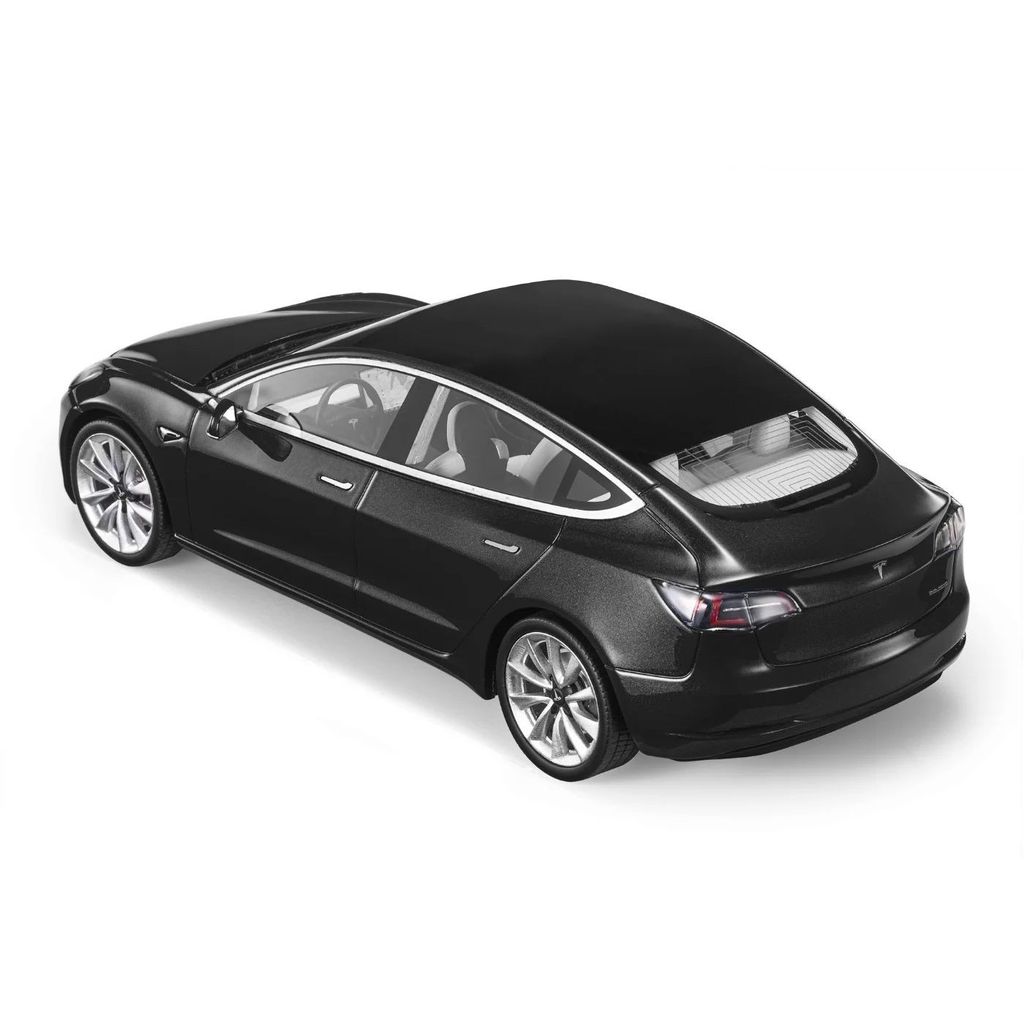 Sort Tesla Model 3 modelbil i skala 1:18 fra LS Collectibles. Perfekt pynt i hjemmet eller i garagen, hvis du også har bilen i fuld skala.