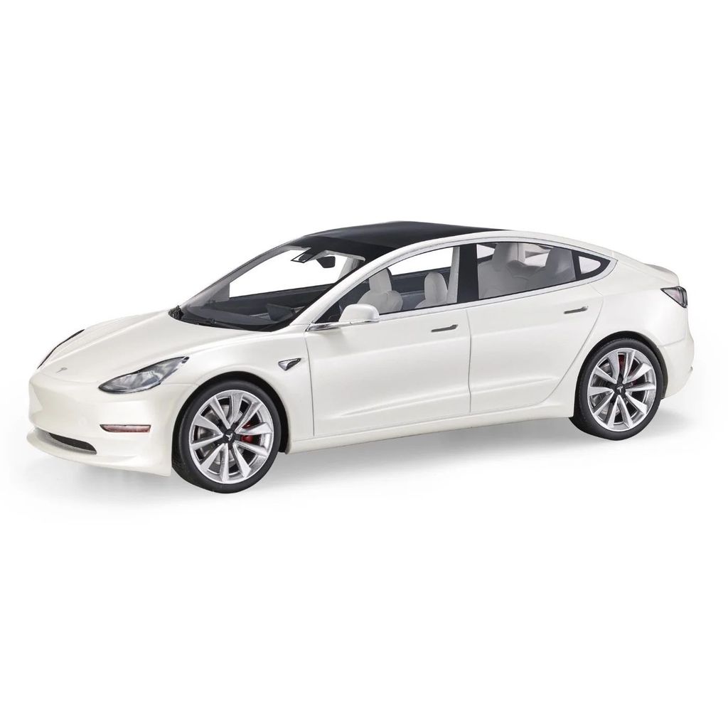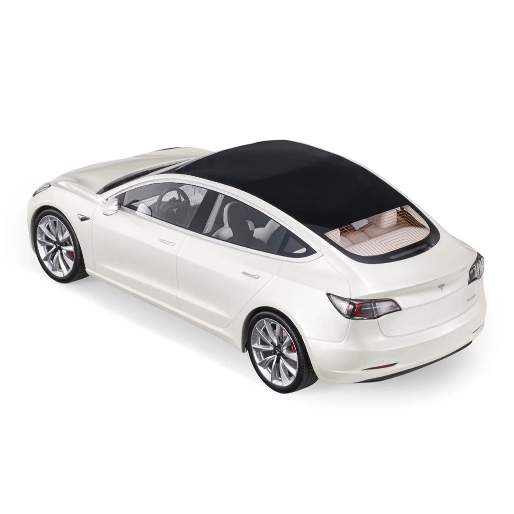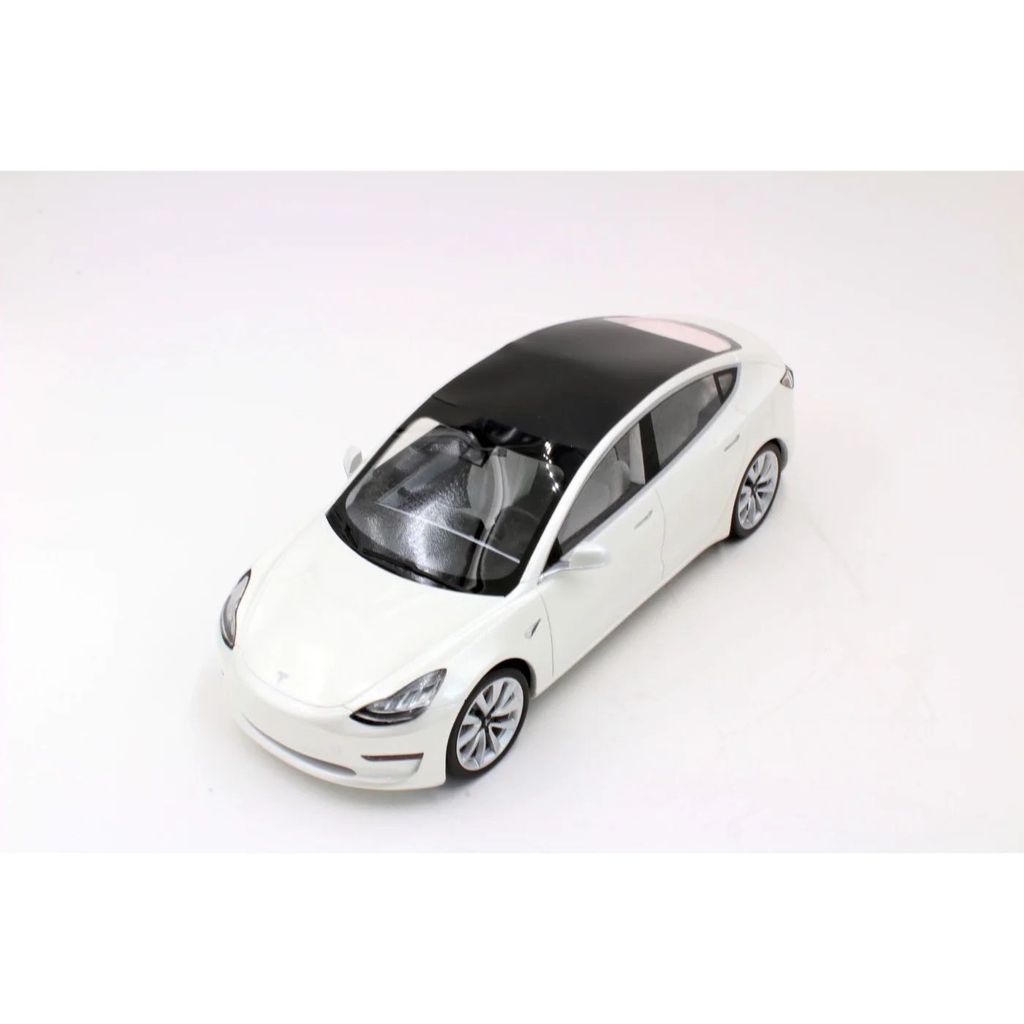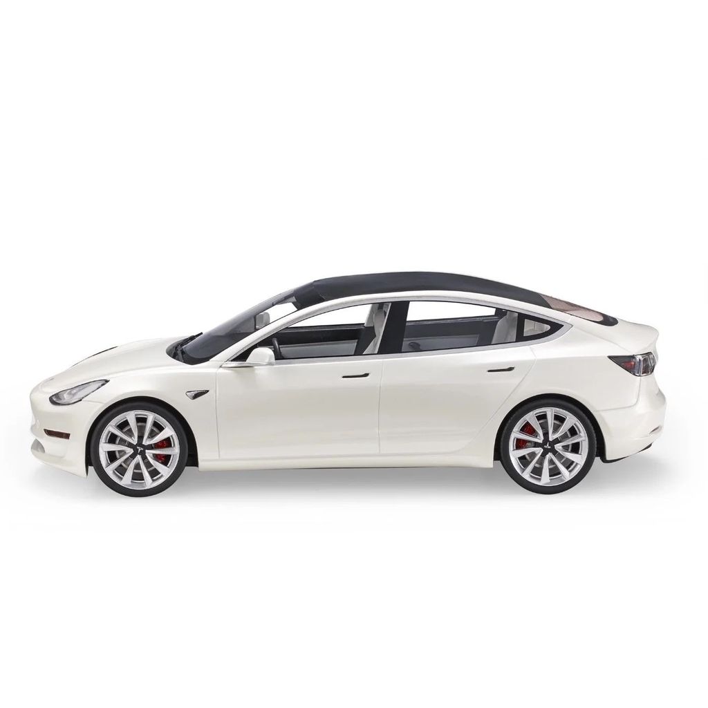 Hvid Tesla Model 3 modelbil i skala 1:18 fra LS Collectibles. Perfekt pynt i hjemmet eller i garagen, hvis du også har bilen i fuld skala.