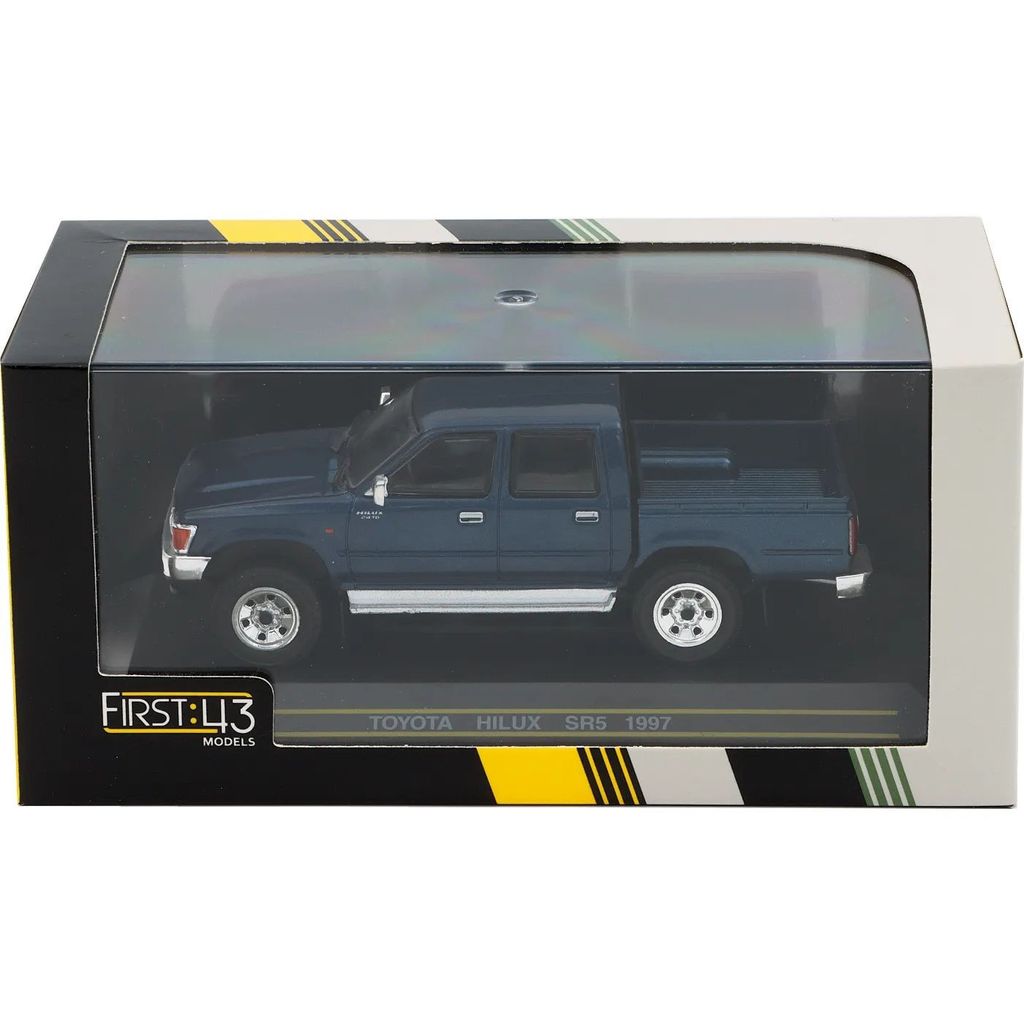 Model af en blå Toyota Hilux SR5, modelår 1997, fra First 43 Models.