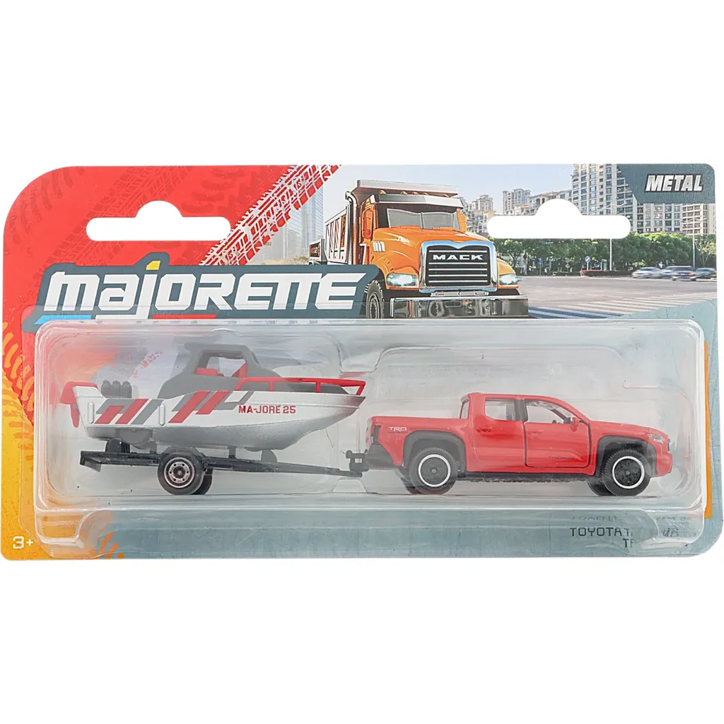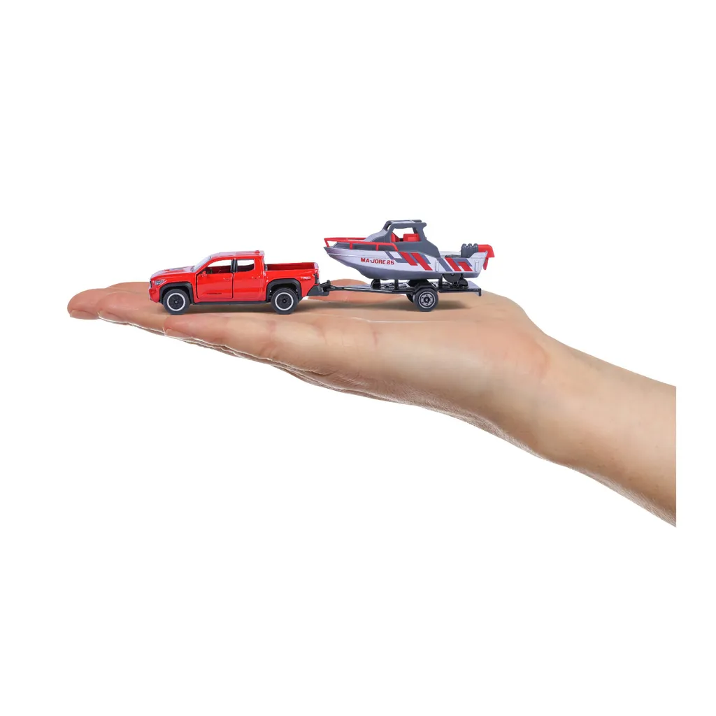 Toyota Tacoma TRD Pro med bådtrailer fra Majorette og City Trailer-serien. Fremstillet af metal med plastdetaljer.