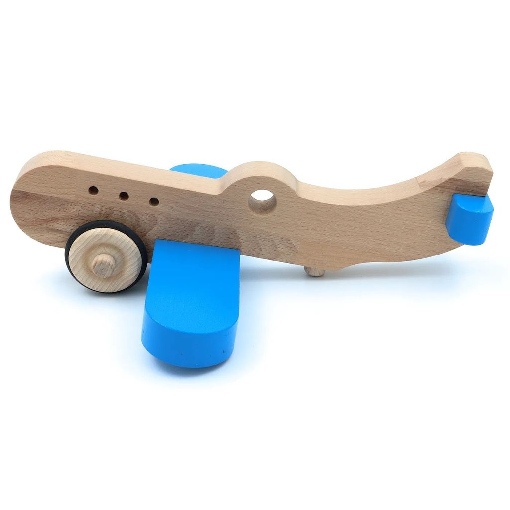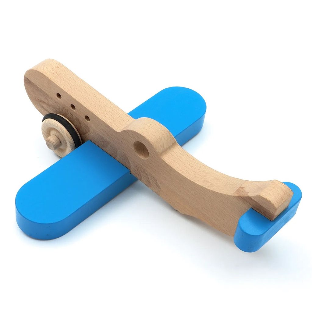 Träflygplan med hjul - Blå