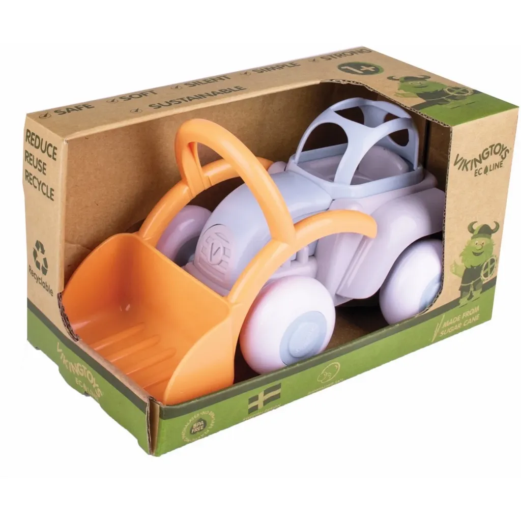 Tractor Midi er fremstillet af naturlige og vedvarende materialer, her sukkerrør. En miljøvenlig og bæredygtig legetøjstraktor fra Viking Toys.