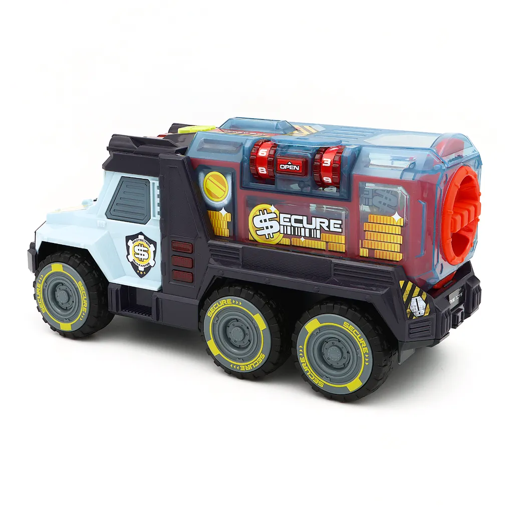 På bagsiden af transporten er der et pengeskab, som kan åbnes med kodelås (tryk på en knap). På toppen af pengeskabet er der en møntåbning. Når du smider en mønt i, lyder der en melodi. Pengeskabet er aftageligt, og nedenunder er der et hemmeligt rum på bakken, hvor man kan opbevare hemmeligheder.
