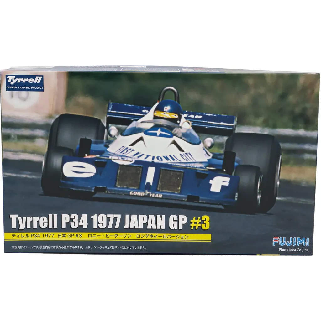 Byggemodel i plast fra japanske Fujimi, hvor du står over for udfordringen med at bygge denne klassiske F1-bil. Tyrrell P34 med nummer 3 blev kørt af Ronnie Peterson under det japanske Grand Prix i 1977.