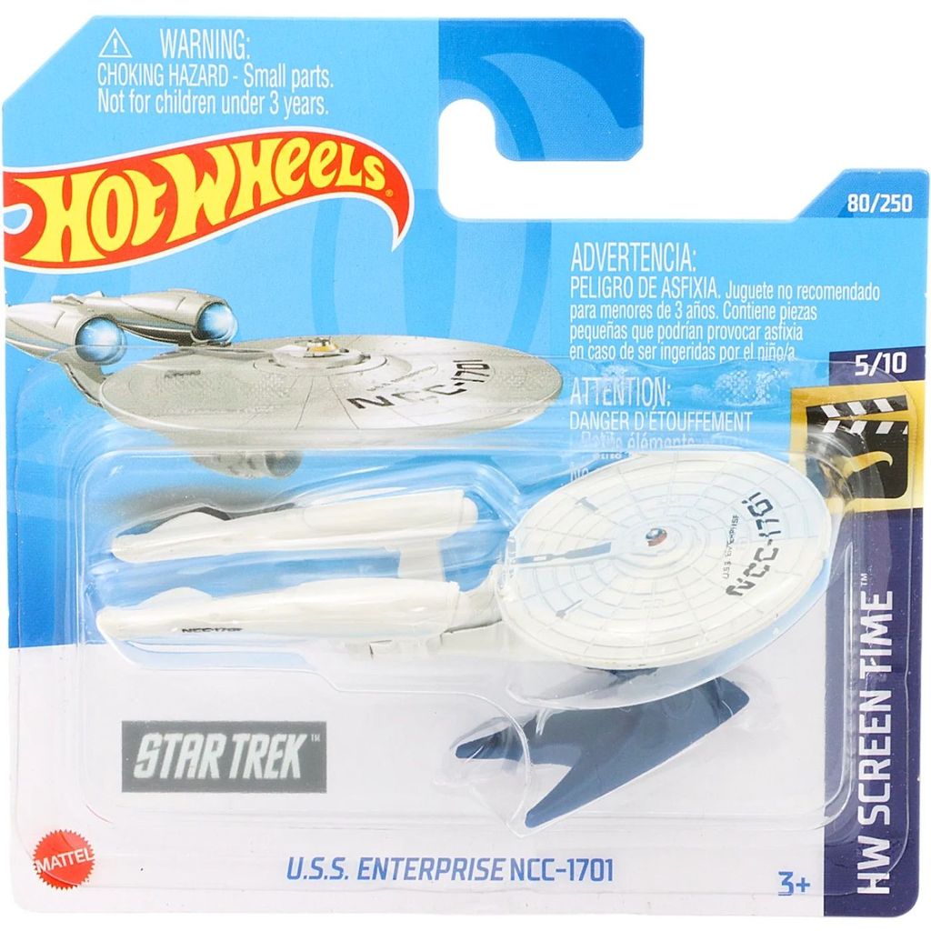 U.S.S. Enterprise NCC-1701 fra Hot Wheels og HW Screen Time-serien, hvor dette rumskib er køretøj nummer 5/10. Rumskibet er nummer 80/250 fra 2022 og har et kort kort (5785).