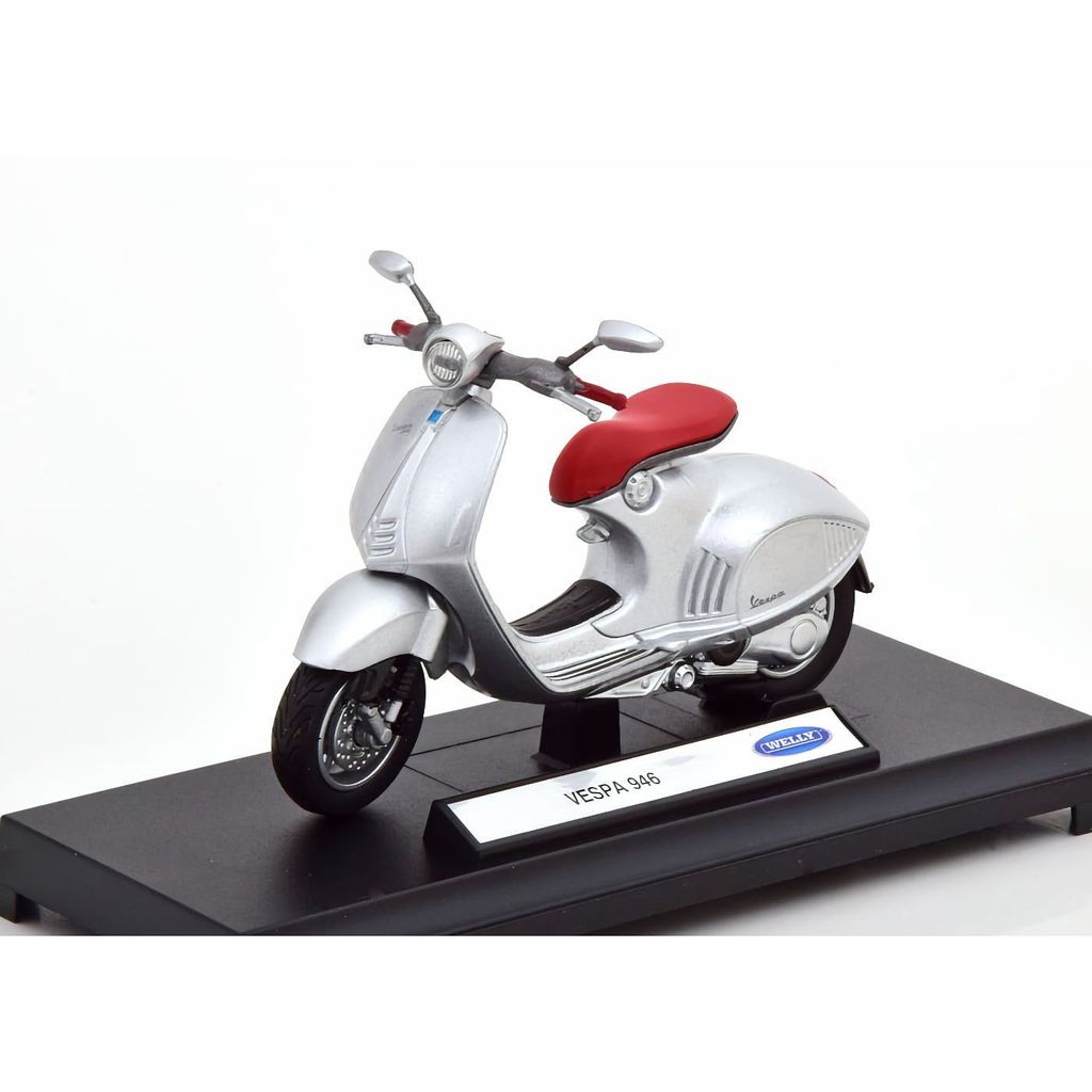 Sølvfarvet Vespa 946, modelår 2014, fra Welly i skala 1:18 (10,5 cm lang).