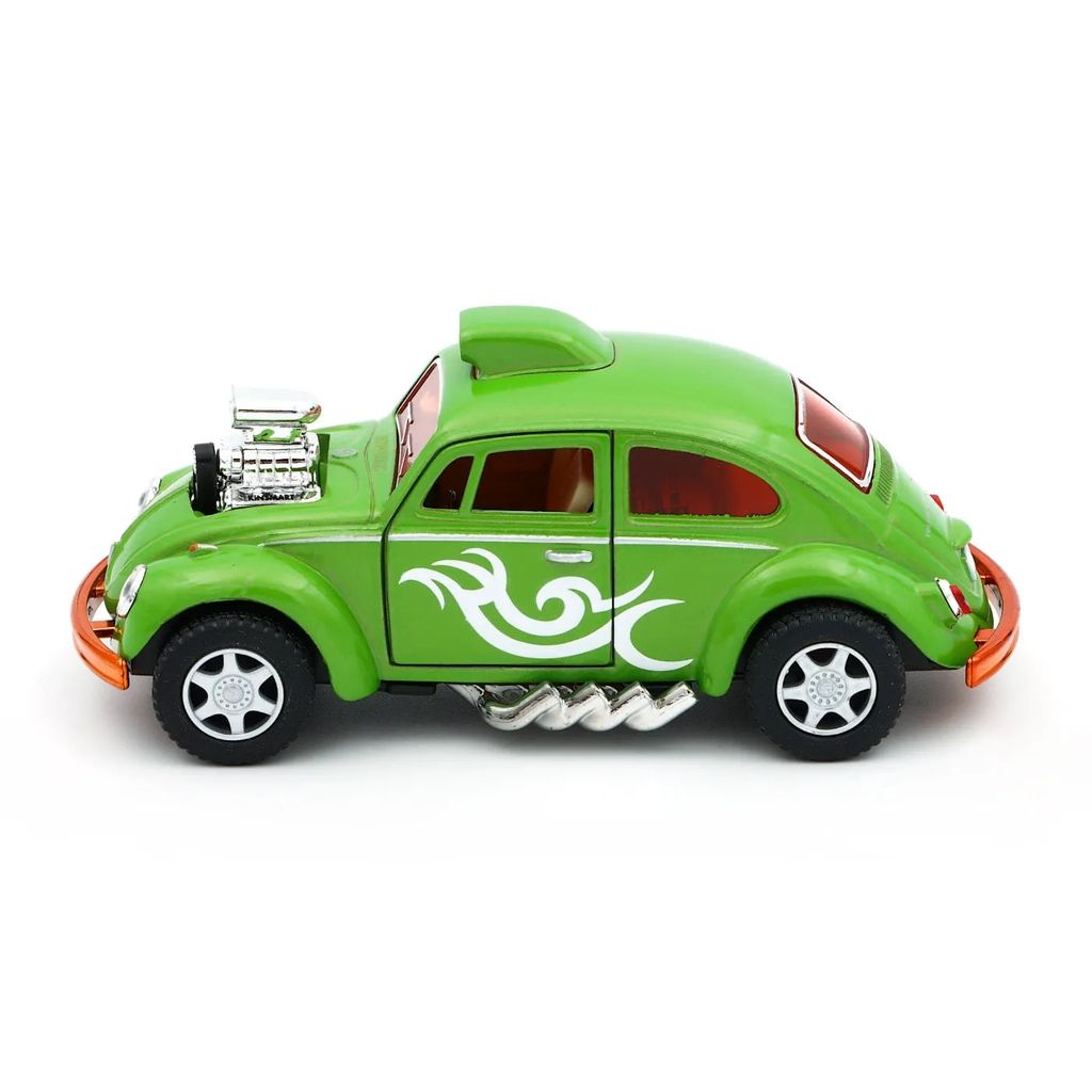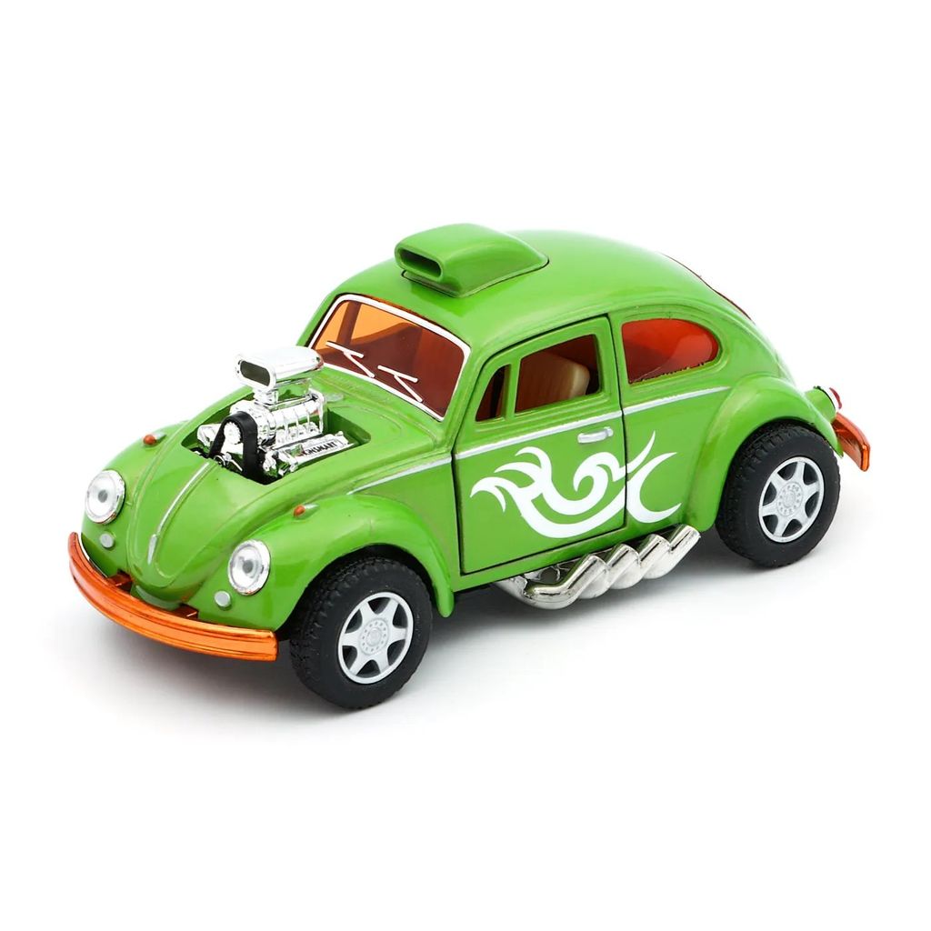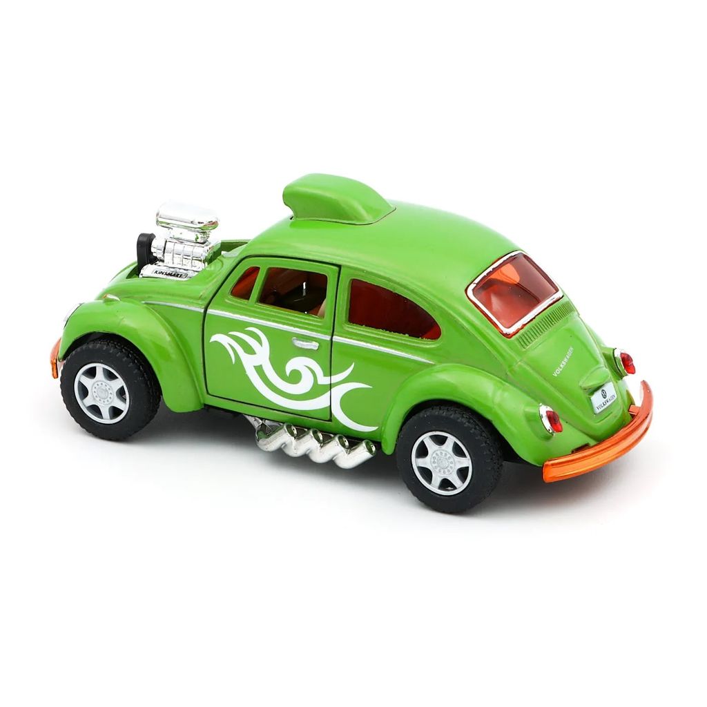 Grøn Volkswagen Beetle Custom Dragracer fra Kinsmart i skala 1:32 (længde 13 cm).