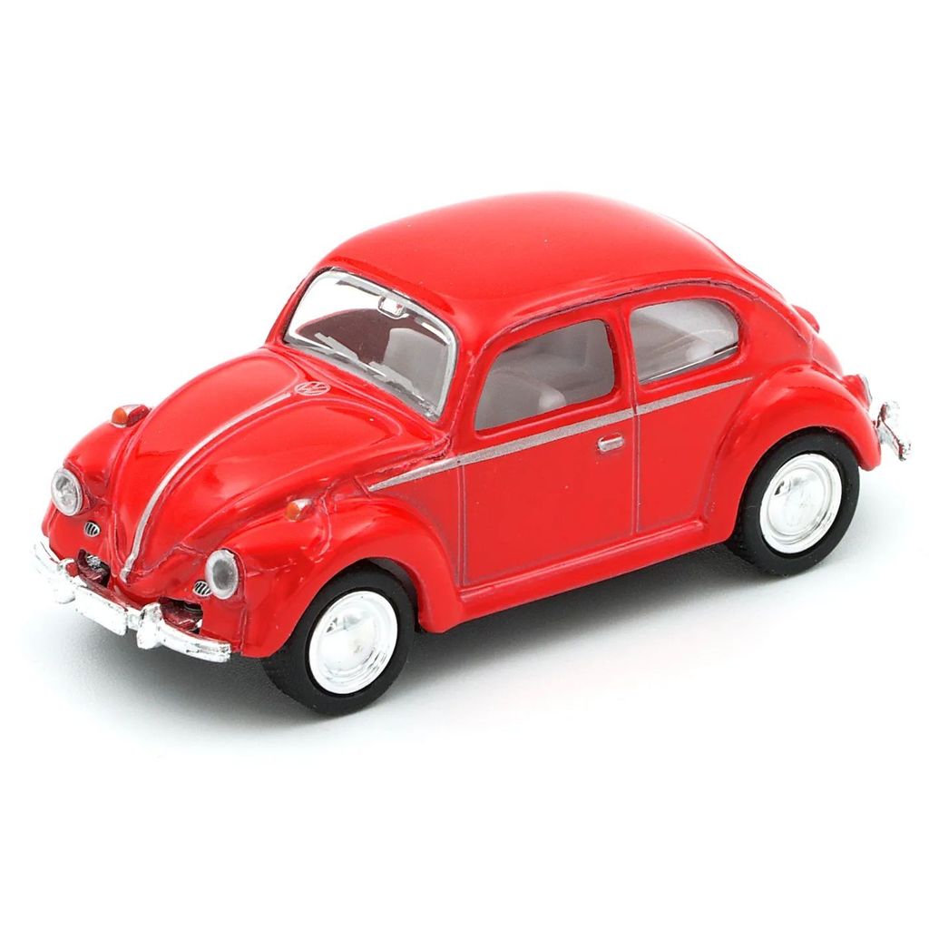 Volkswagen Classical Beetle (1967) fra Kinsmart i skala 1:64 (længde 6,5 cm). Legetøjsbilen fås i flere farver.