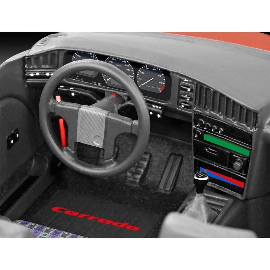 Byggemodel i plast fra Revell, der udfordrer dig til at bygge en Volkswagen Corrado i skala 1:24 (18,2 cm). Lim, maling og pensel medfølger.