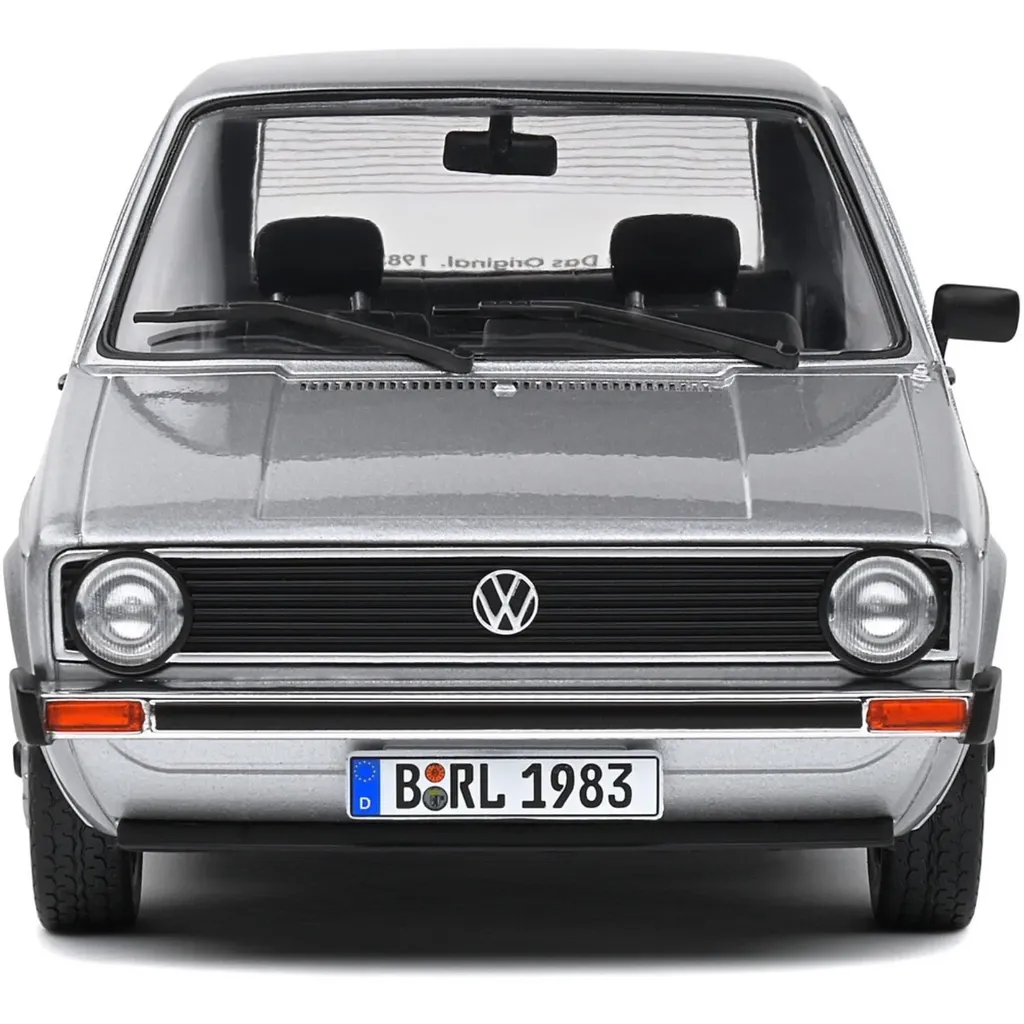 Volkswagen Golf L, modelår 1983, i sølv (Gris Metal) fra Solido. Skalaen er 1:18, hvilket giver denne model en længde svarende til 20 cm.