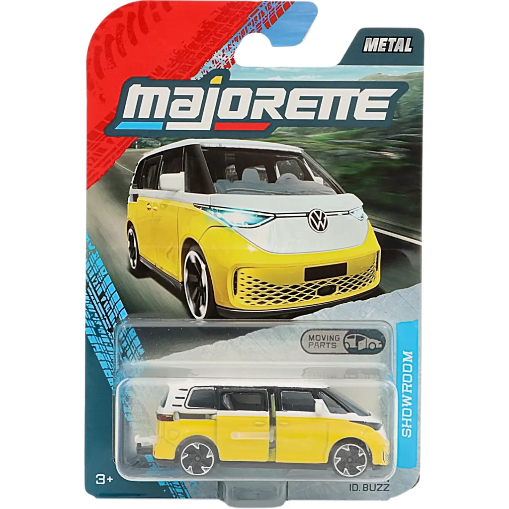 Volkswagen ID. Buzz fra Majorette og Showroom Premium Cars-serien. Bilen er 7 cm lang og lavet af metal med plastdetaljer.