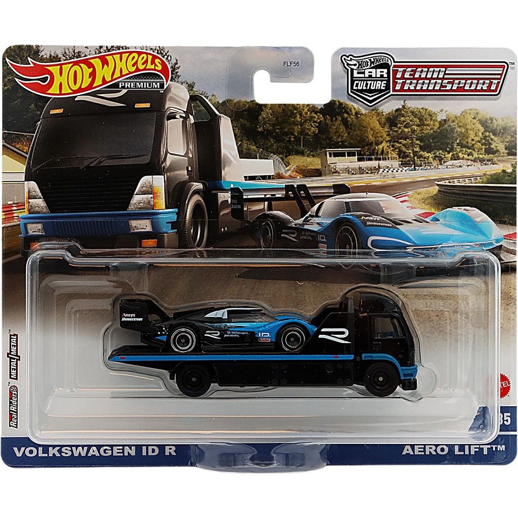 Fra Hot Wheels sælger vi denne Hot Wheels Premium 2021, Car Culture: Team Transport #35. Transporten består af en Volkswagen ID R transporteret på en Aero Lift.