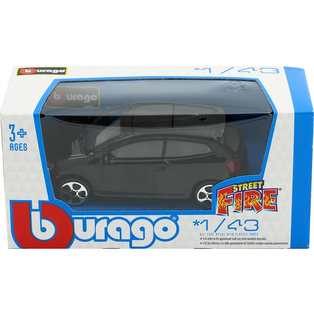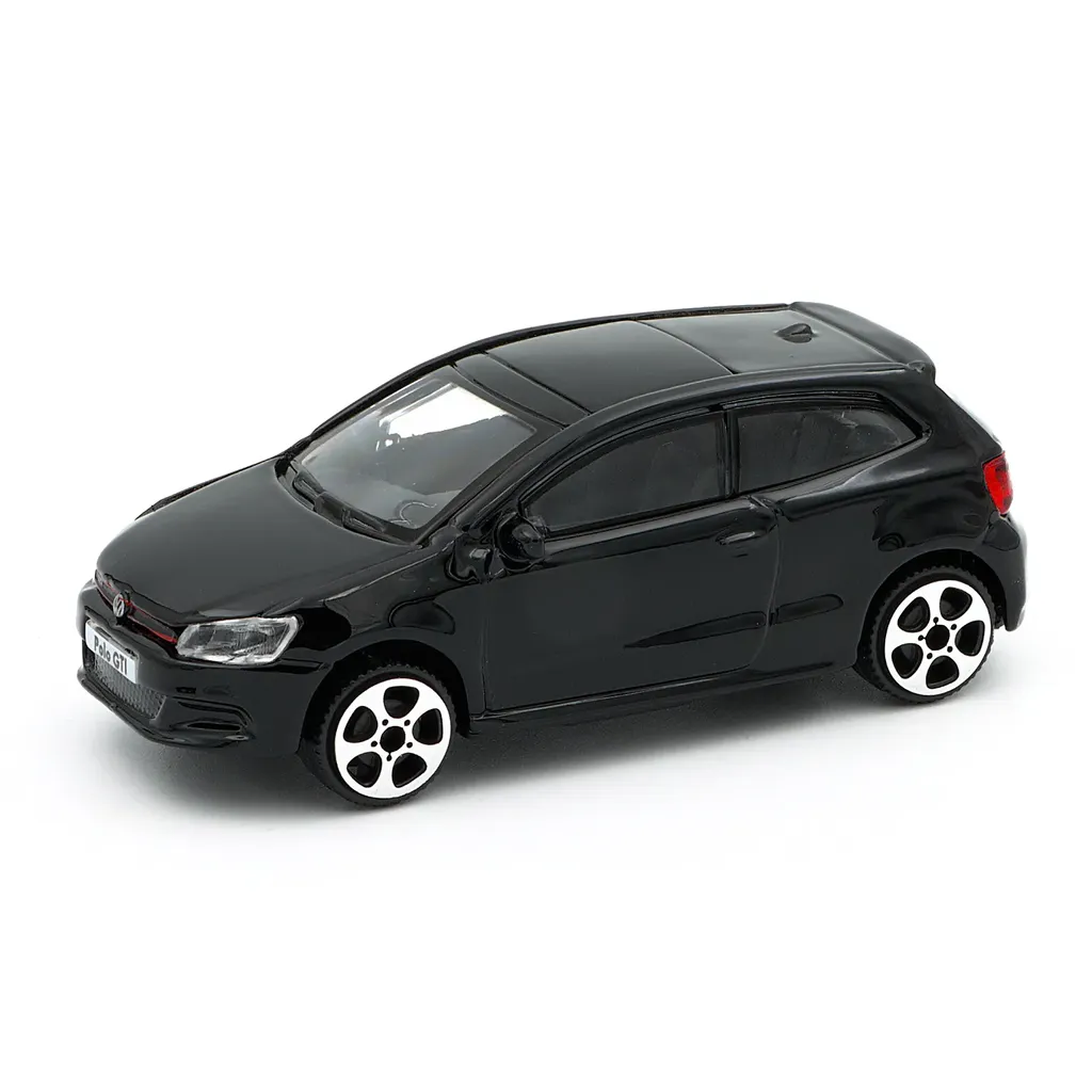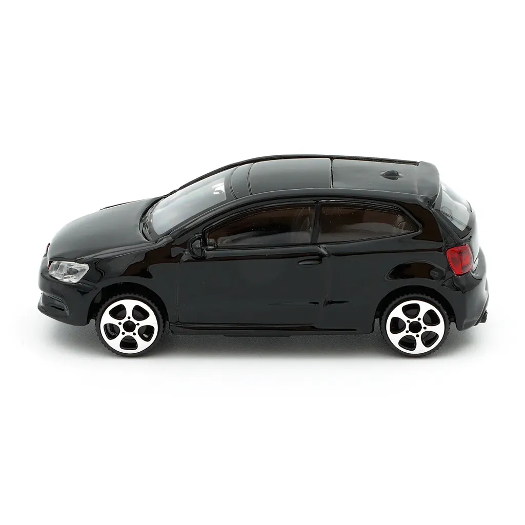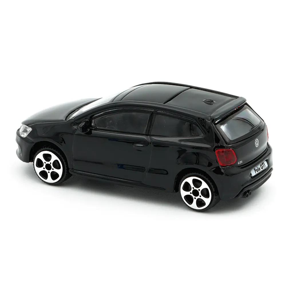 Volkswagen Polo Mk5 GTI i sort som legetøj fremstillet af Bburago i metal med plastdetaljer. Poloen er 9 cm lang (skala 1:43).