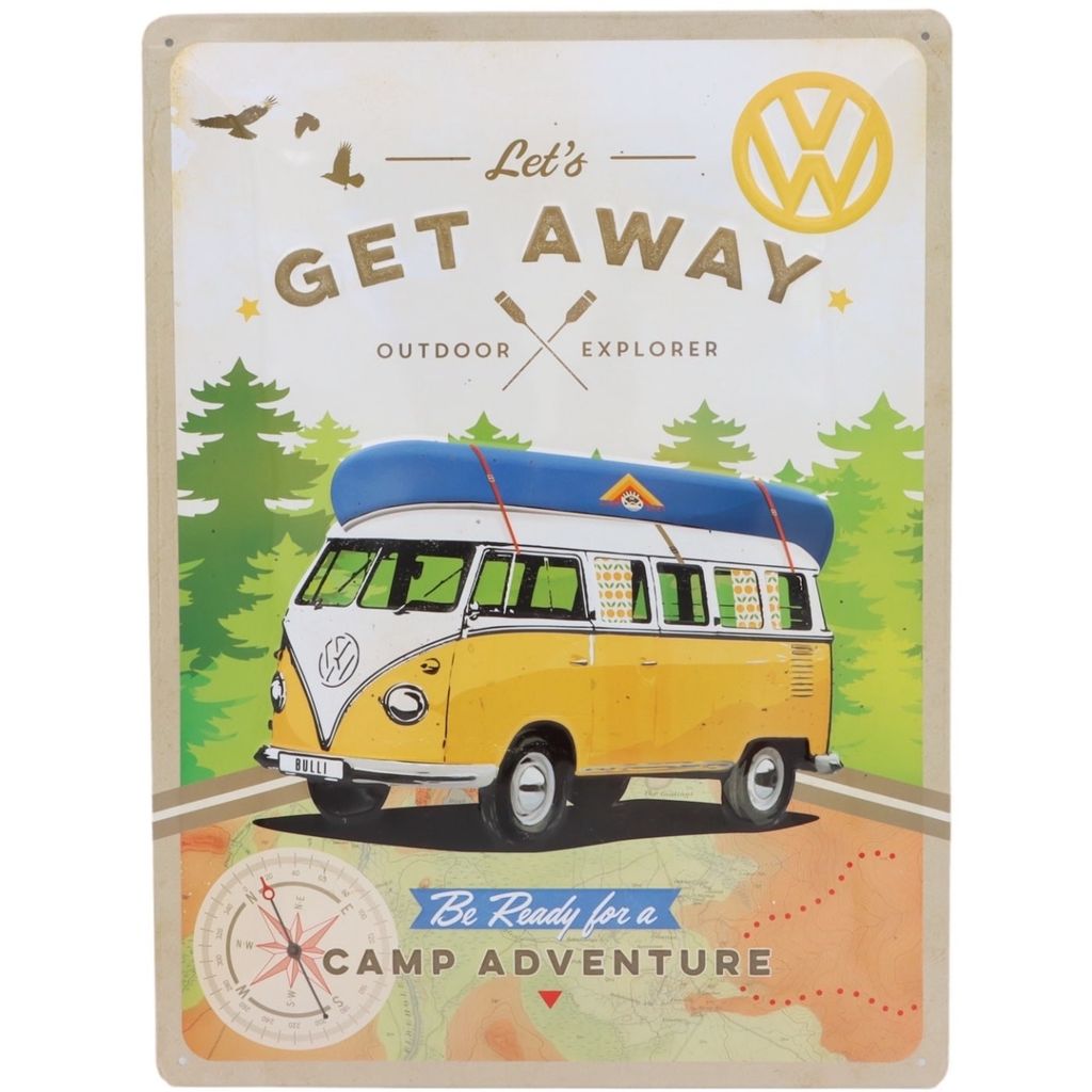 Volkswagen T1 - Gul - Get Away - Plåtskylt - 30x40 cm