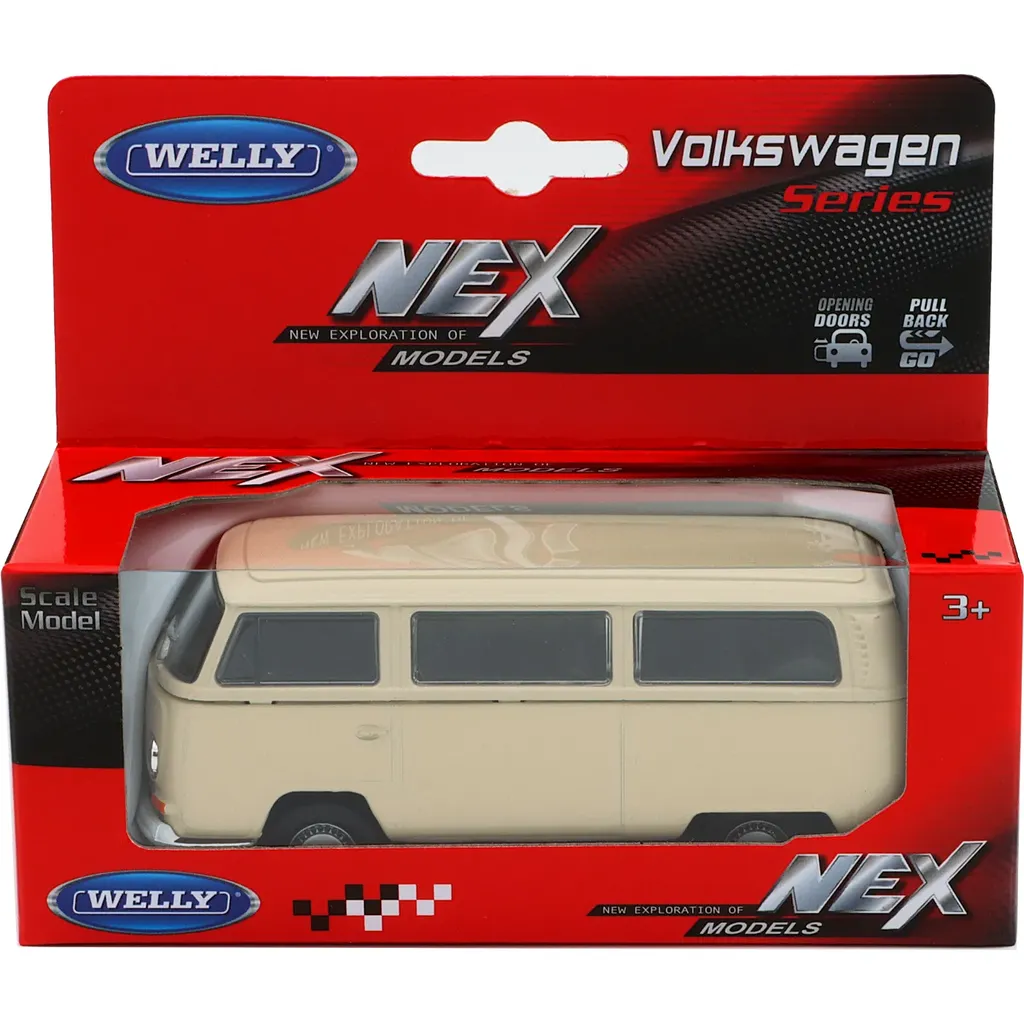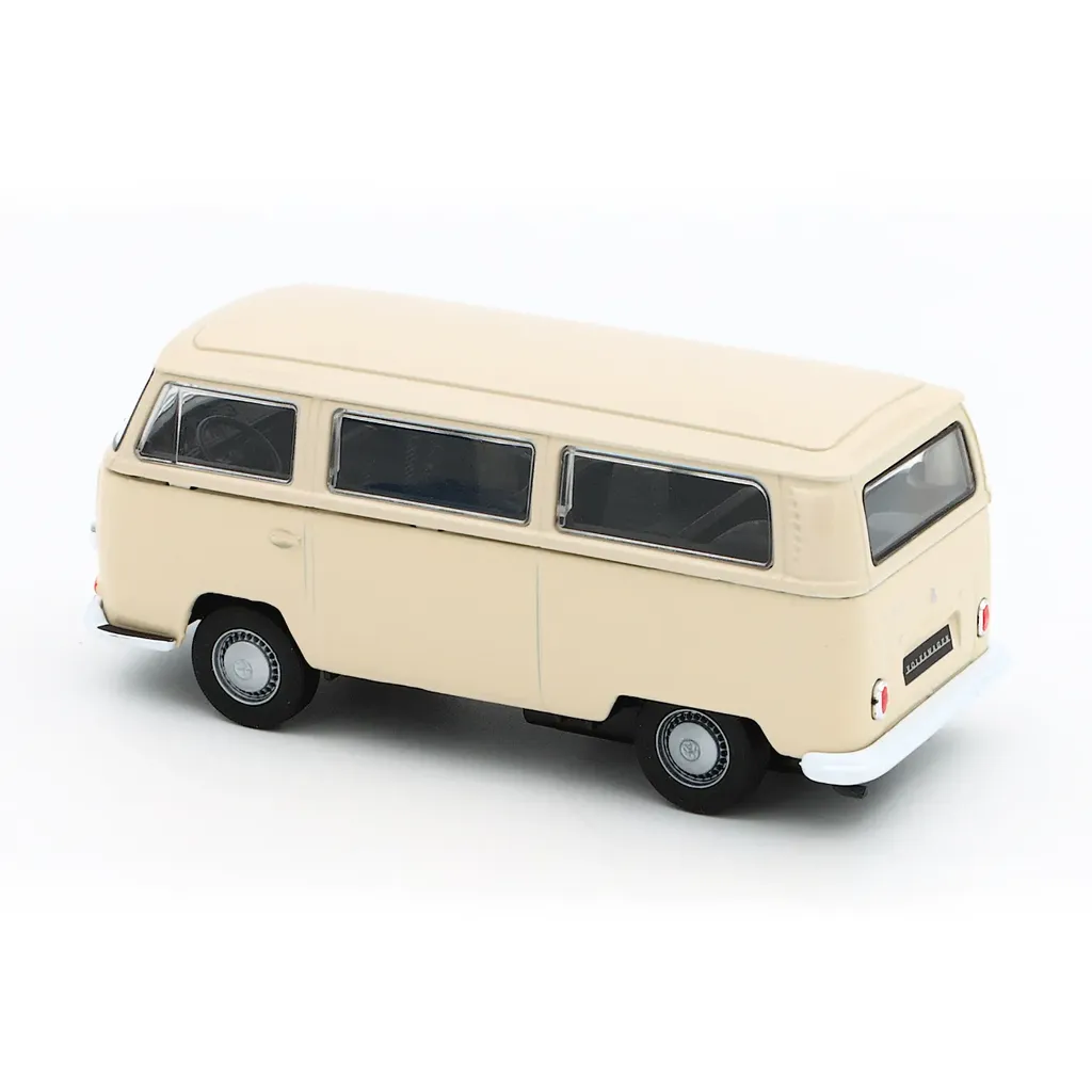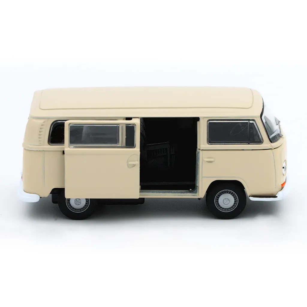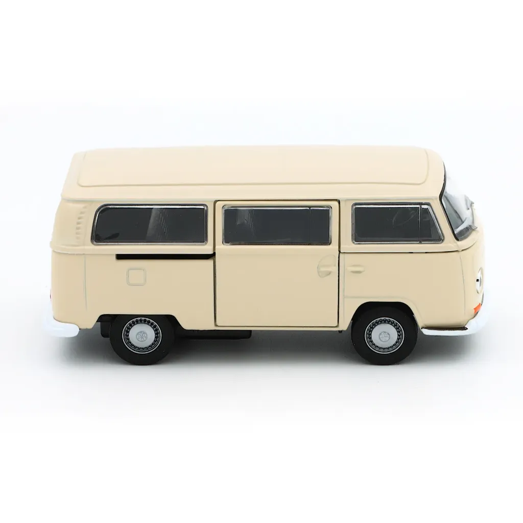 1972 T2 Folkabus som beige legetøjsbil fra Welly er 11 cm lang (skala 1:34).