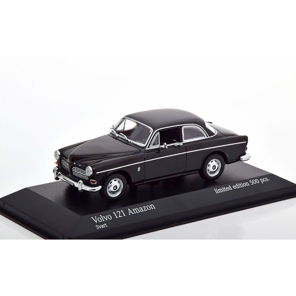 Skaleret model af en sort Volvo 121 Amazon fra 1966 produceret af den tyske modelbilproducent Minichamps. Skalaen er 1:43, og bilen er ca. 10 cm lang. Modelbilen har et begrænset oplag på 500 eksemplarer.