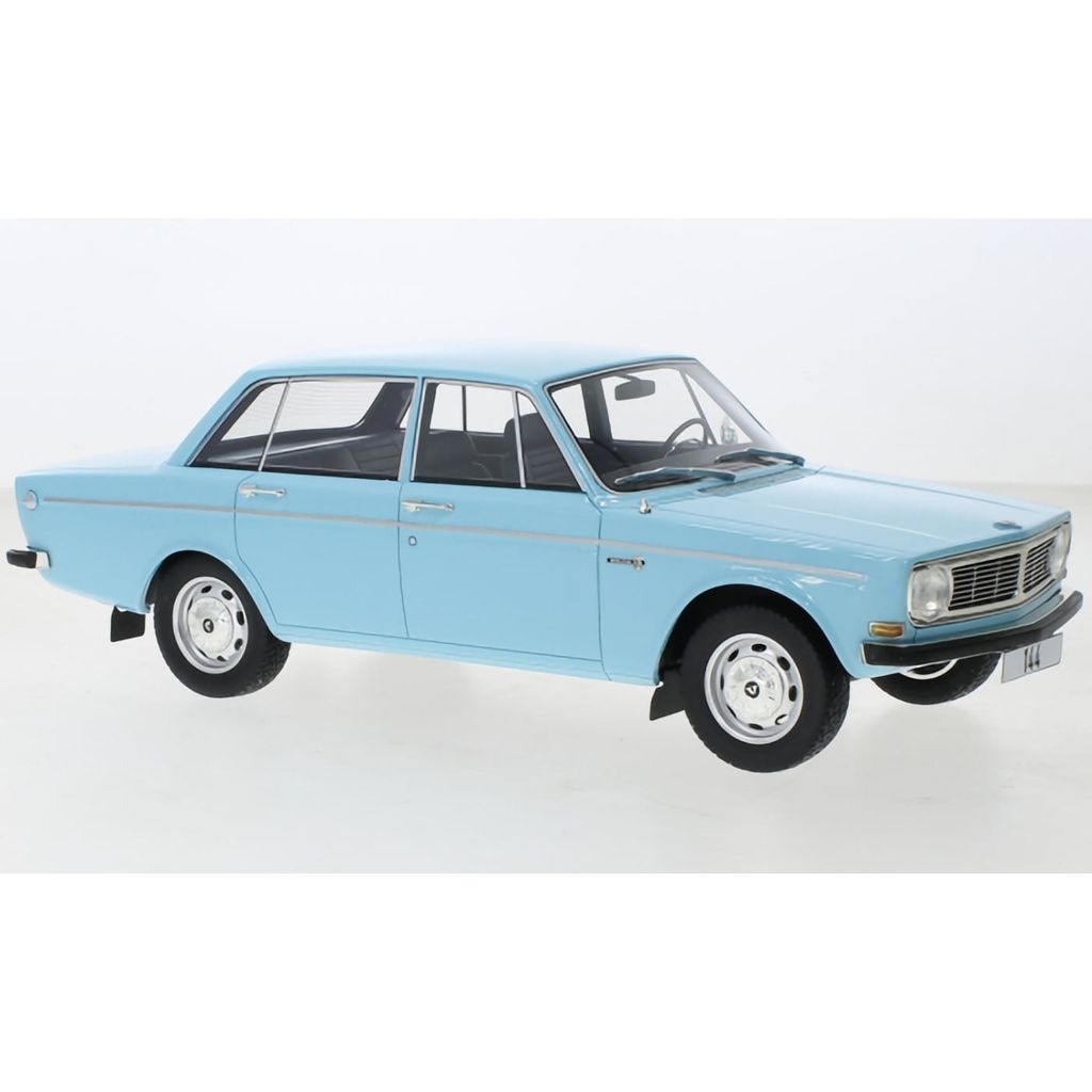 Lyseblå Volvo 144 fra 1970 fremstillet af tyske Best of Show (BoS-Models) i skala 1:18 (ca. 25 cm).