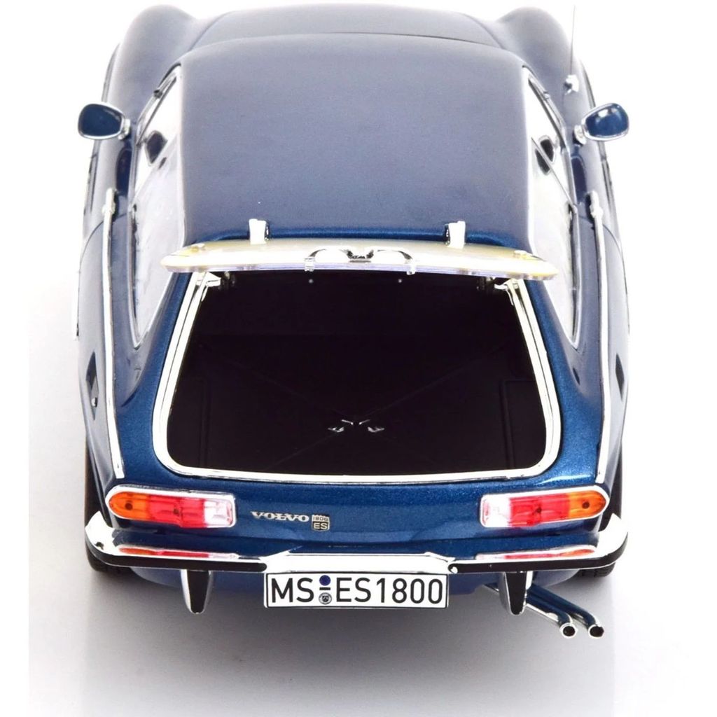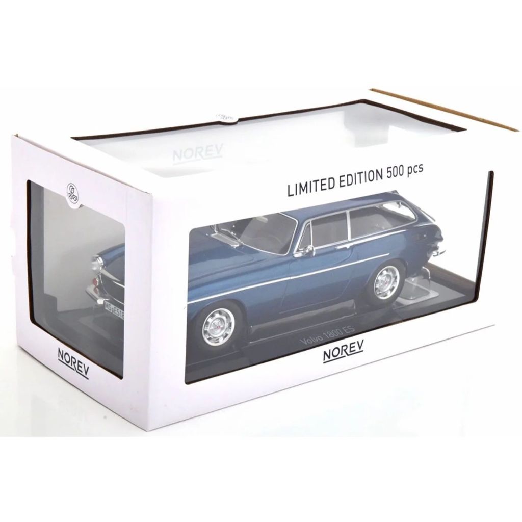 Modelbil fra franske Norev, der forestiller en mørkeblå Volvo 1800 ES, modelår 1973, i skala 1:18 (længde 24 cm).