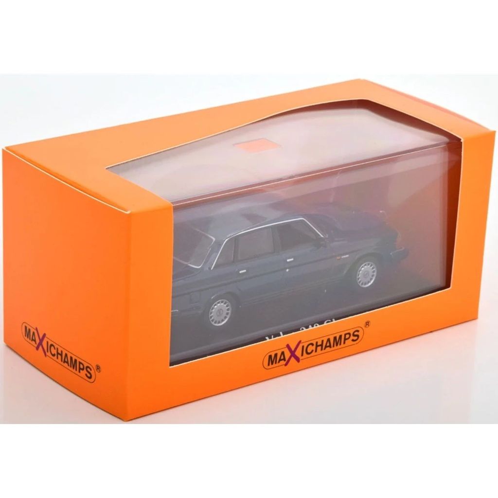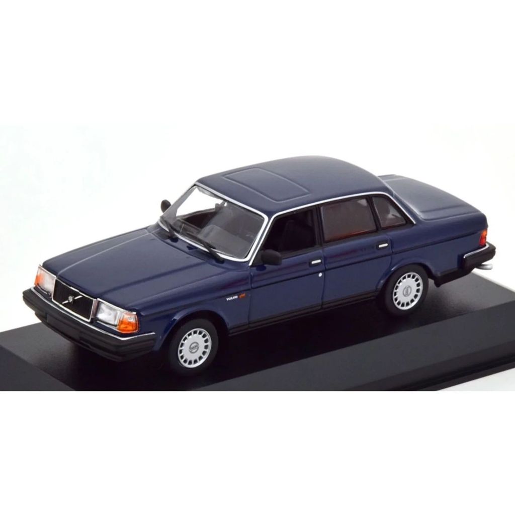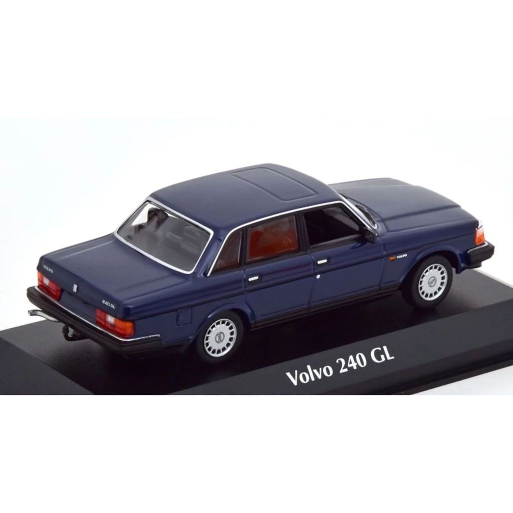 Skalamodel af en Volvo 240 GL fra 1986. Modellen er mørkeblå og i skala 1:43 (længde ca. 11 cm). Modellen er en del af Minichamps serie Maxichamps.