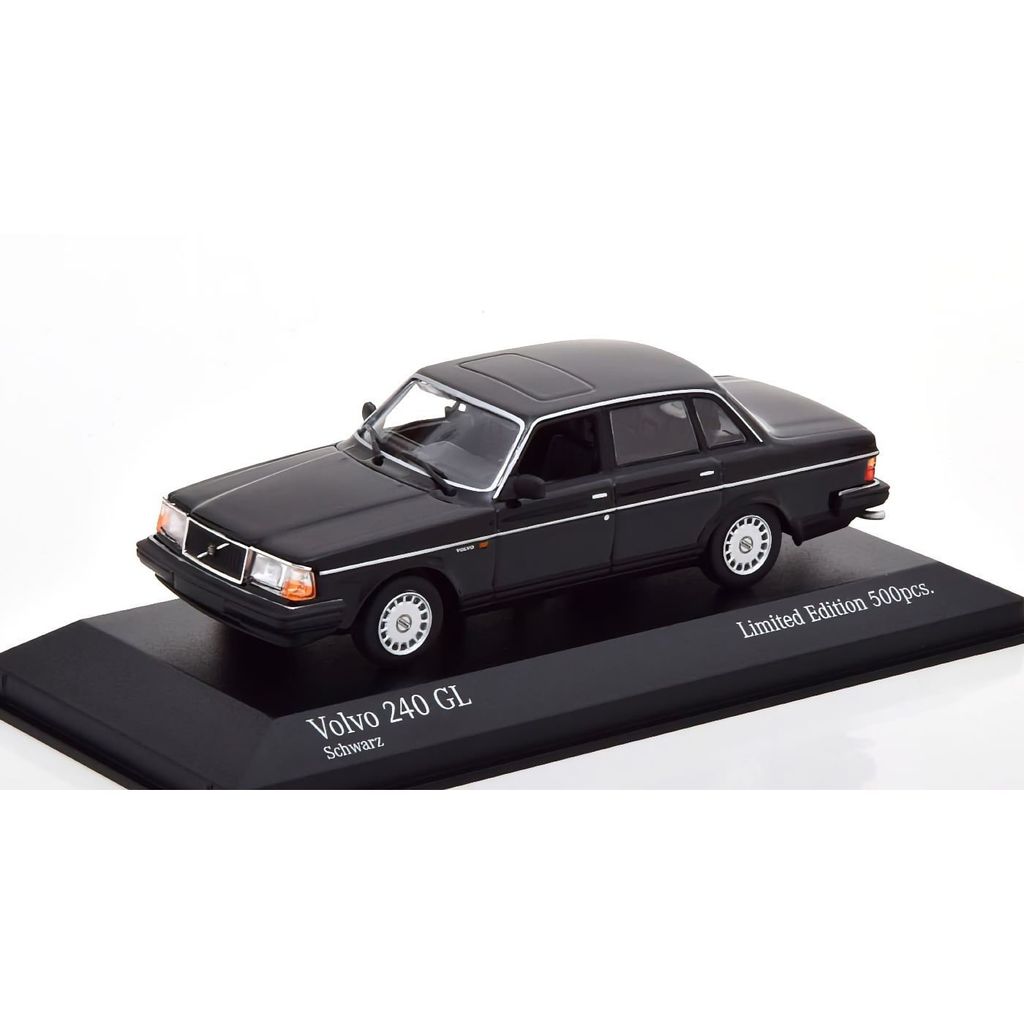 Superfin skalamodel af en Volvo 240 GL fra 1986 lavet af den tyske modelbilproducent Minichamps. Skalaen er 1:43, og bilen er ca. 11 cm lang. En sort Volvo 240 GL produceret i et begrænset oplag på 500 modelbiler.