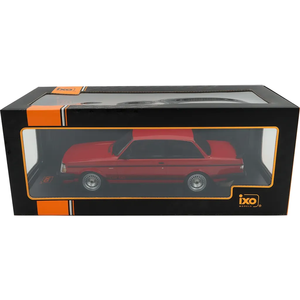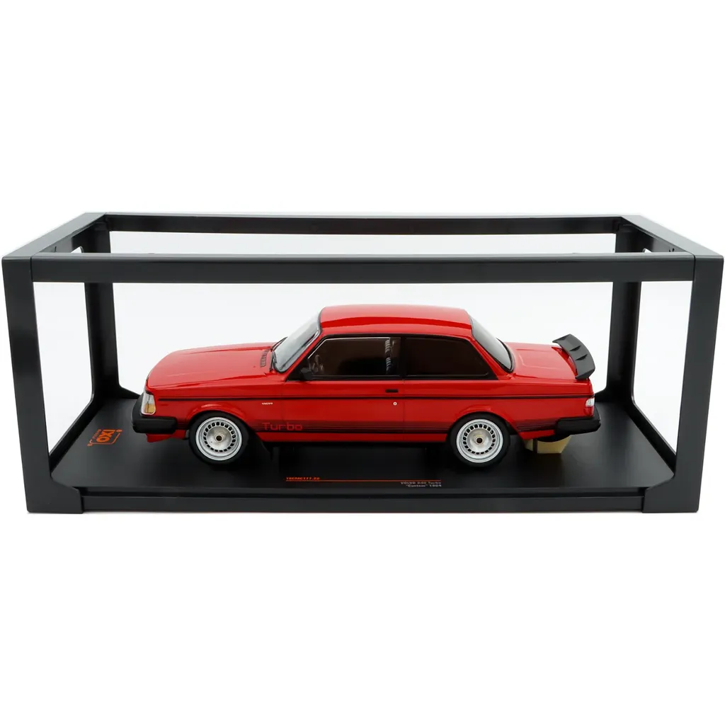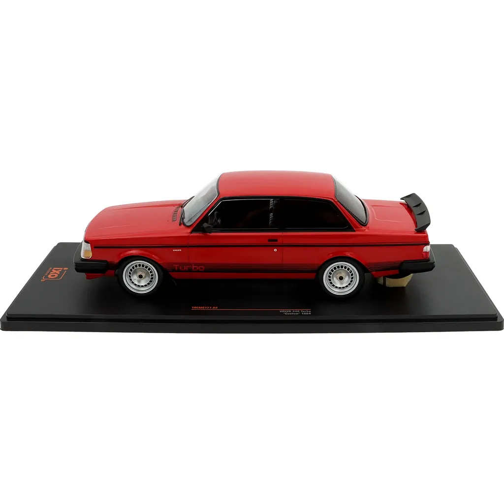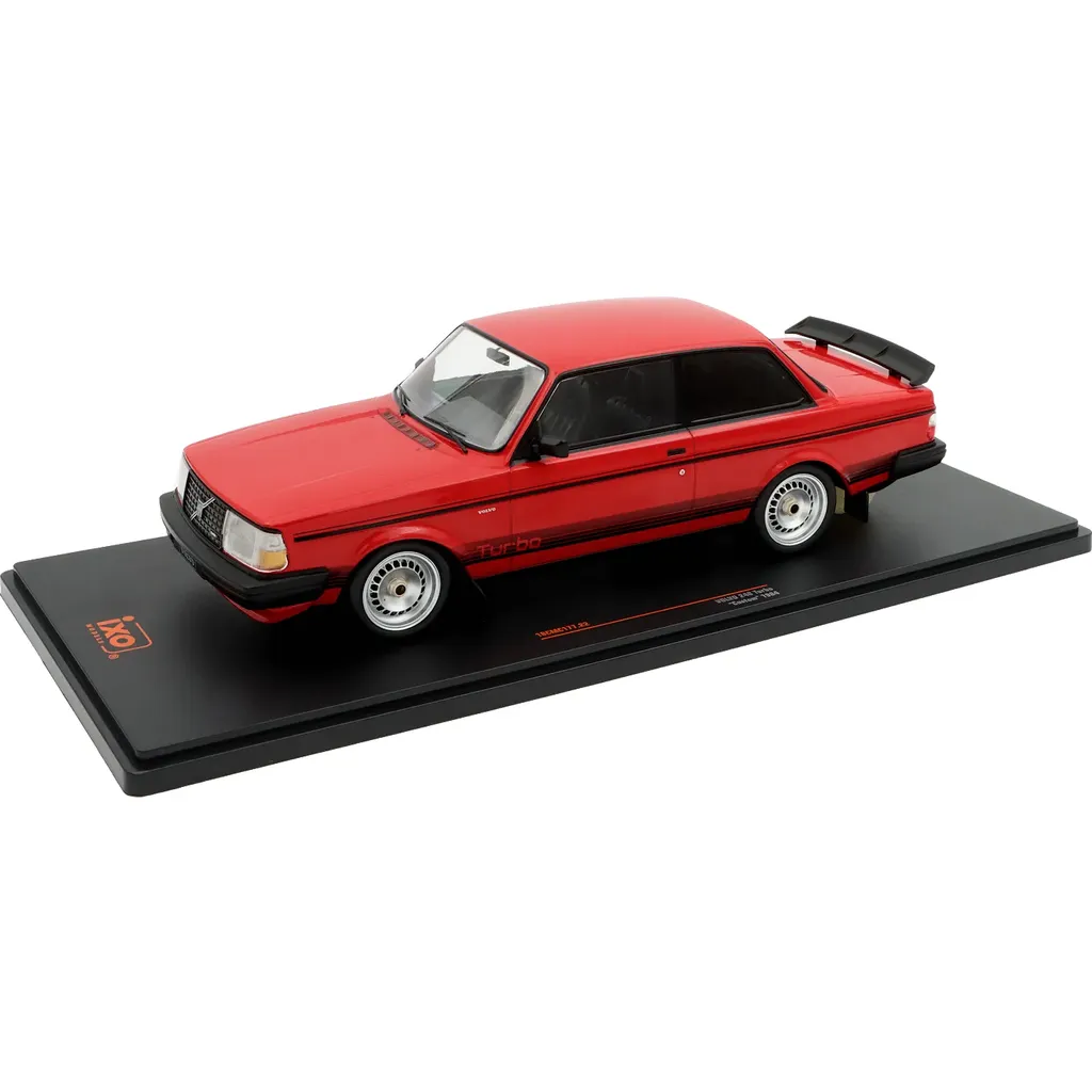 Volvo 240 Turbo "Custom" modelår 1984 som modelbil fra Ixo Models i skala 1:18 (26,5 cm). Rød maling med sort dekoration.