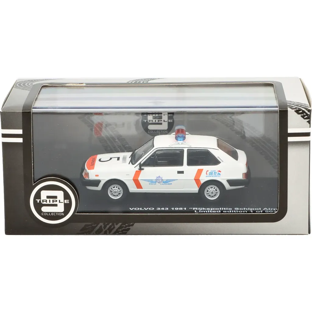 Volvo 343, modelår 1981, som politibil fra den hollandske Schiphol lufthavn. Modelbilen er lavet af Triple9 i skala 1:43 (9,8 cm).