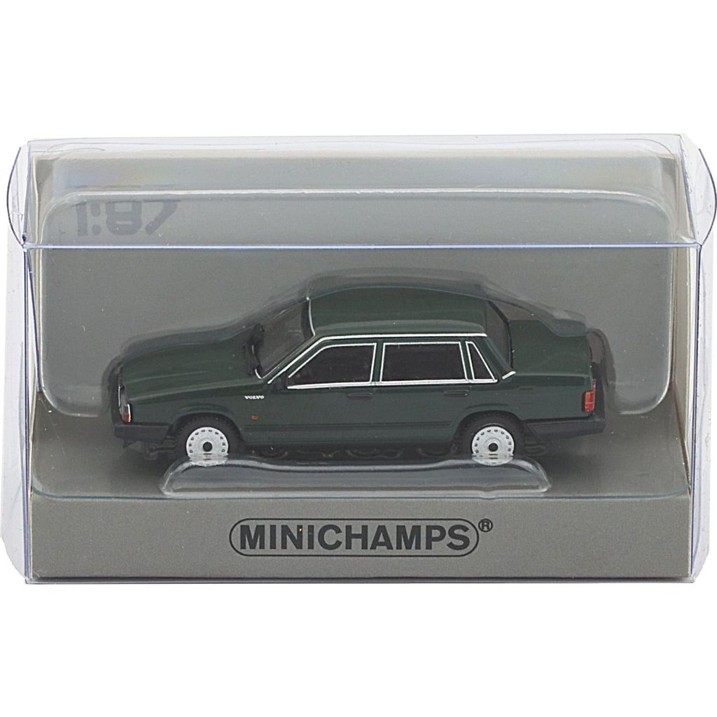 Grøn Volvo 740 GL som lille (skala 1:87 = 5,5 cm) modelbil fra tyske Minichamps.