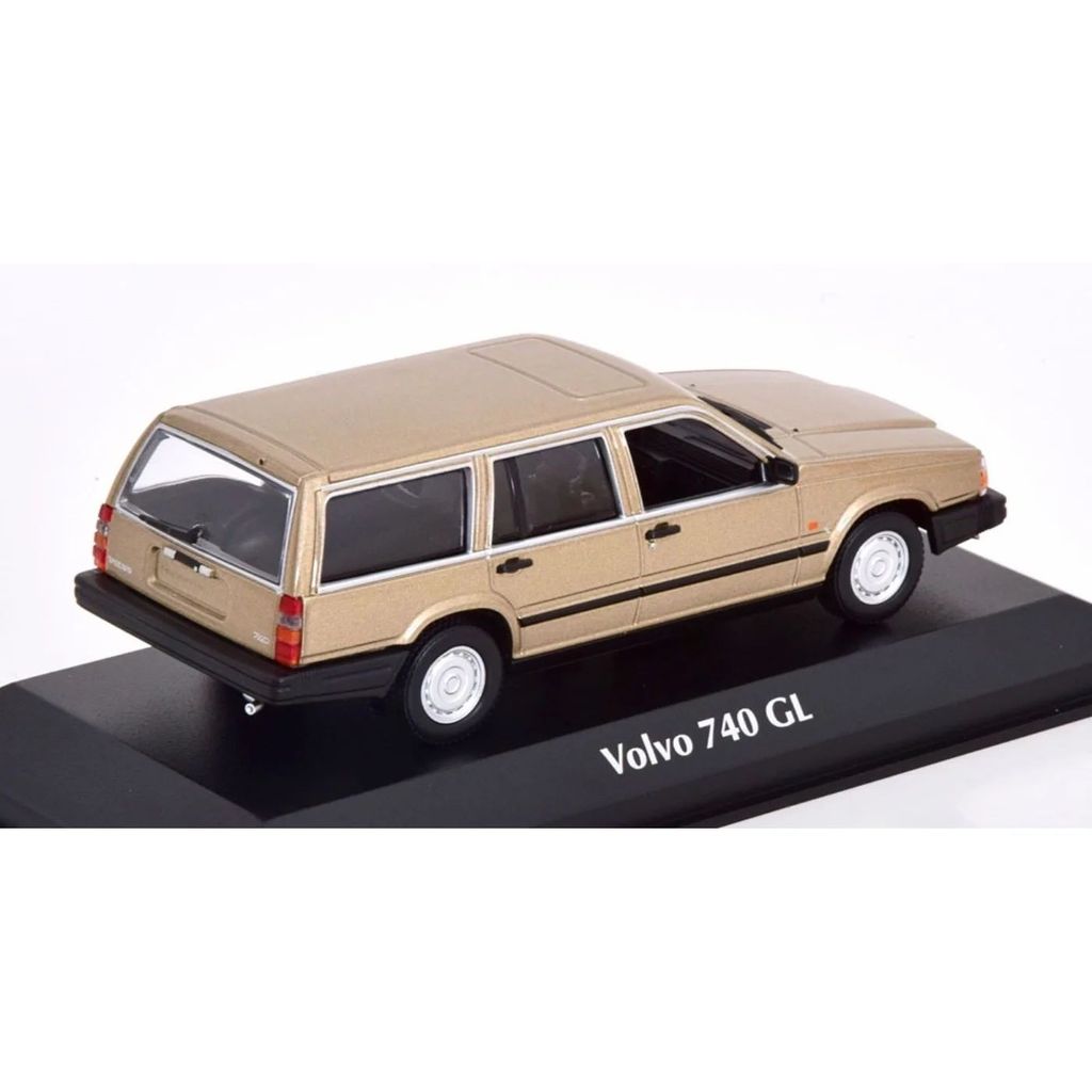Model af en guldfarvet Volvo 740 GL modelår 1986. Modelbilen er produceret af Minichamps og er en del af Maxichamps-serien. Skalaen er 1:43, hvilket betyder, at modellen er ca. 10,5 cm lang.