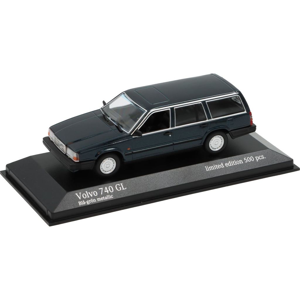 Modelbil fra Minichamps i skala 1:43. Bilen, en Volvo 740 GL med blågrøn metallak, er en meget flot samlerbil af en svensk klassiker.
