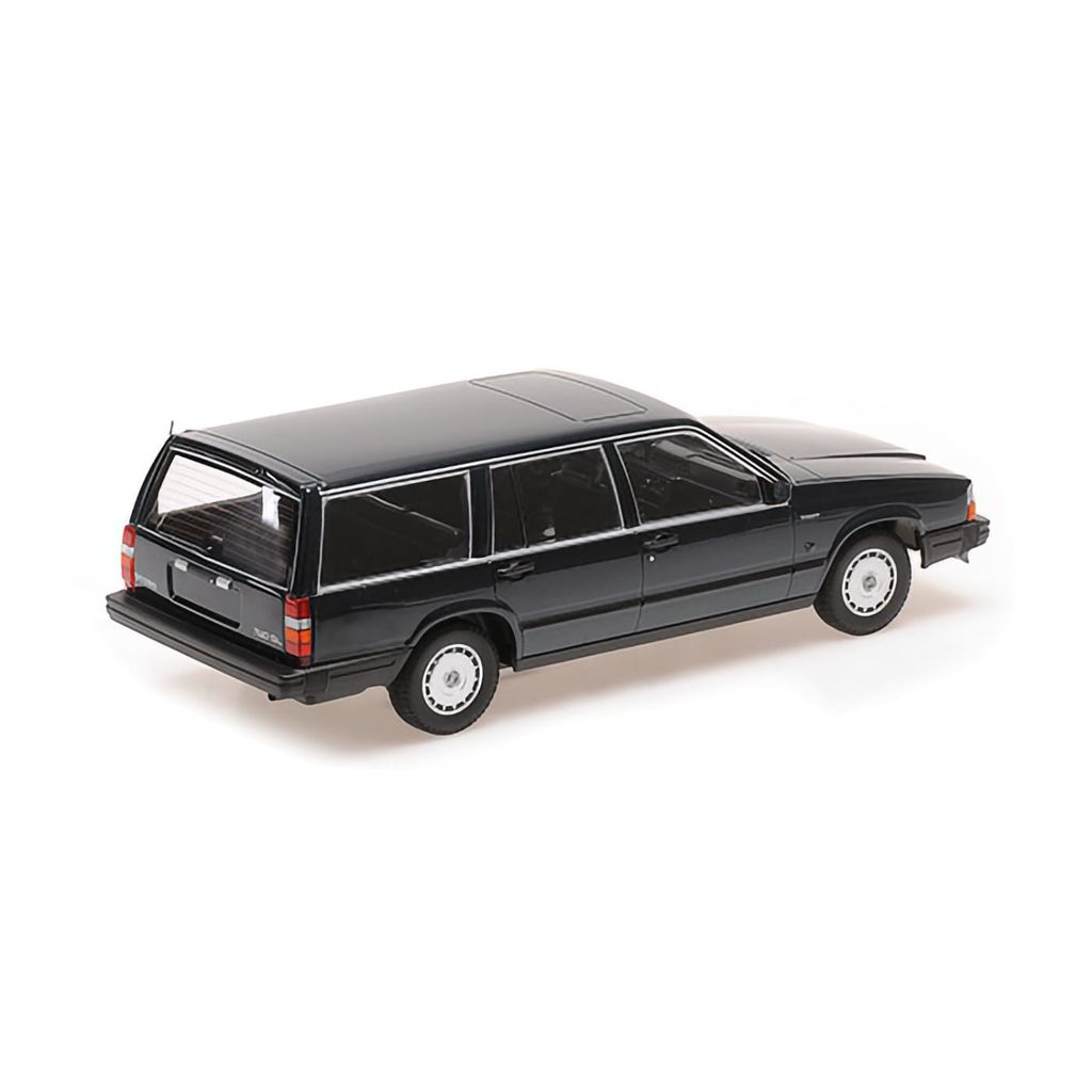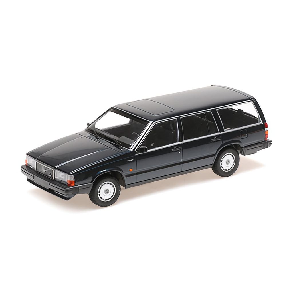 En klassisk stationcar i form af en Volvo 740 GL Break i mørkegrøn metallak fra modelbilproducenten Minichamps i skala 1:18. Skalaen giver os en flot model på 26 cm.
