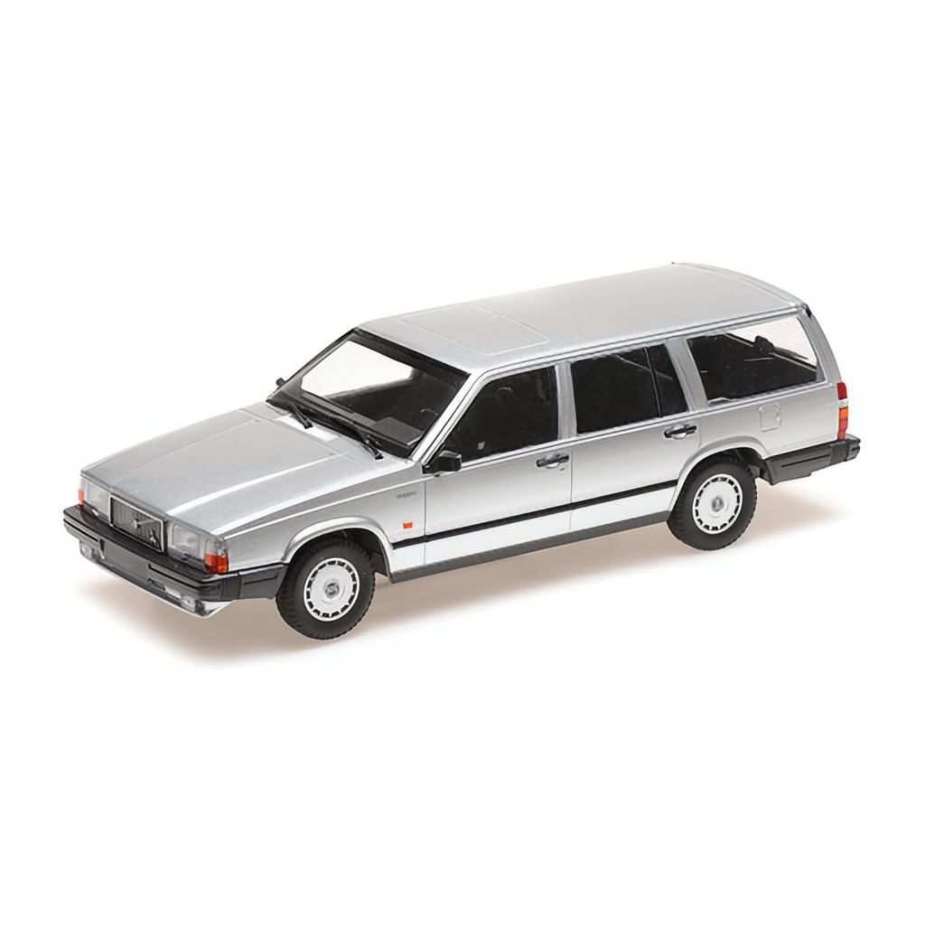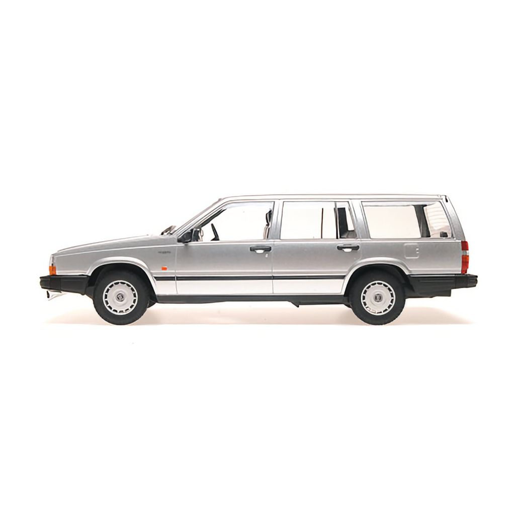Volvo 740 GL Break (stationcar) i sølv som modelbil fra tyske Minichamps. Dette er en ægte svensk klassiker afbildet af Minichamps i skala 1:18 (26 cm).