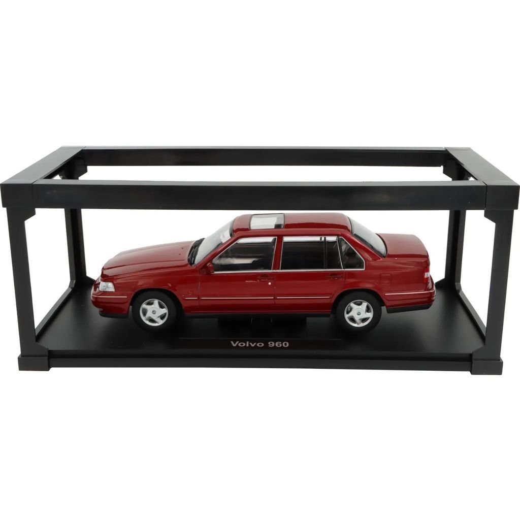 Modellen står på en sort bundplade med en ramme, hvor der står "Volvo 960" i sølv/gråt. Rammen tages nemt af, så bilen kan stå pænt hjemme på hylden eller i vitrineskabet.