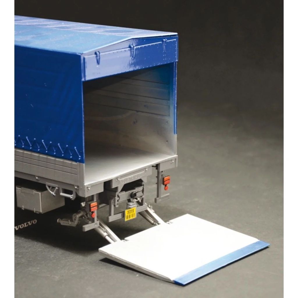 Navnet på dette sæt fra Italeri er "Volvo F16 Globetrotter Canvas with elevator", og skalaen er 1:24.