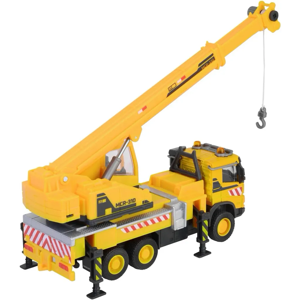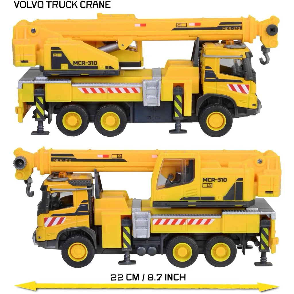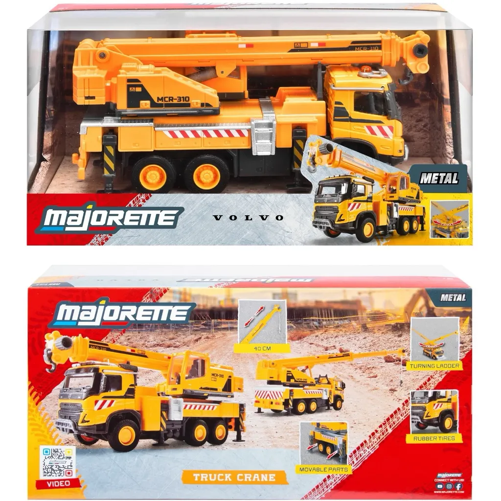 Gul kranbil i form af en Volvo FMX fra Majorette i deres serie af større køretøjer, Majorette Grand Series. Kranbilen er 19 cm.