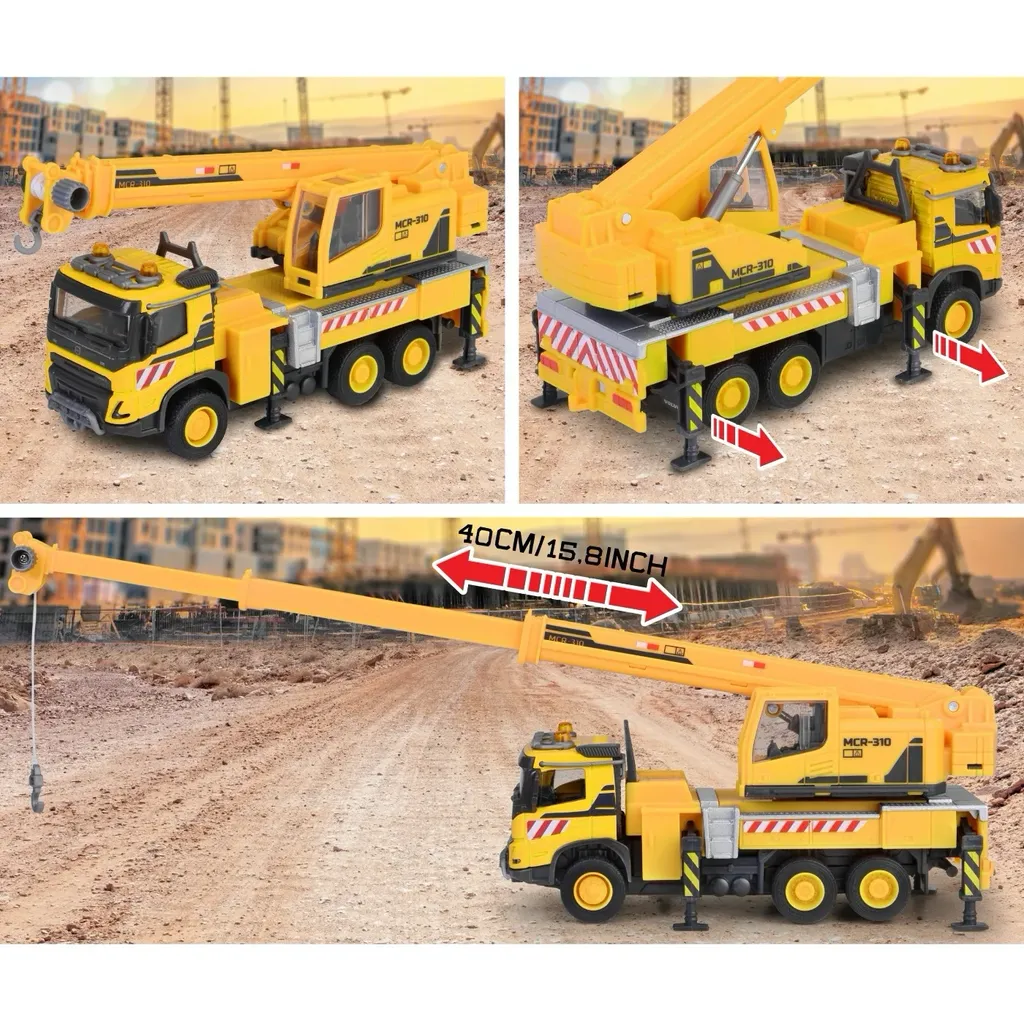 Kranen kan drejes og forlænges, så den bliver 35 cm. Øverst på kranen er der et spil med reb og krog. Kranbilen har også fire udfoldelige støtteben.