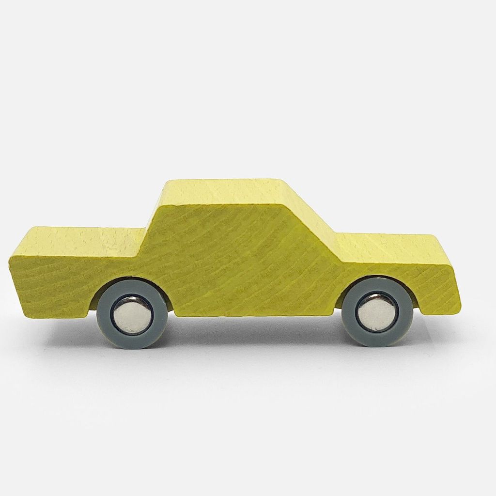 Træbilen Back and Forth fra Waytoplay er en fin lille gul træbil, som er produceret og malet i Italien.
