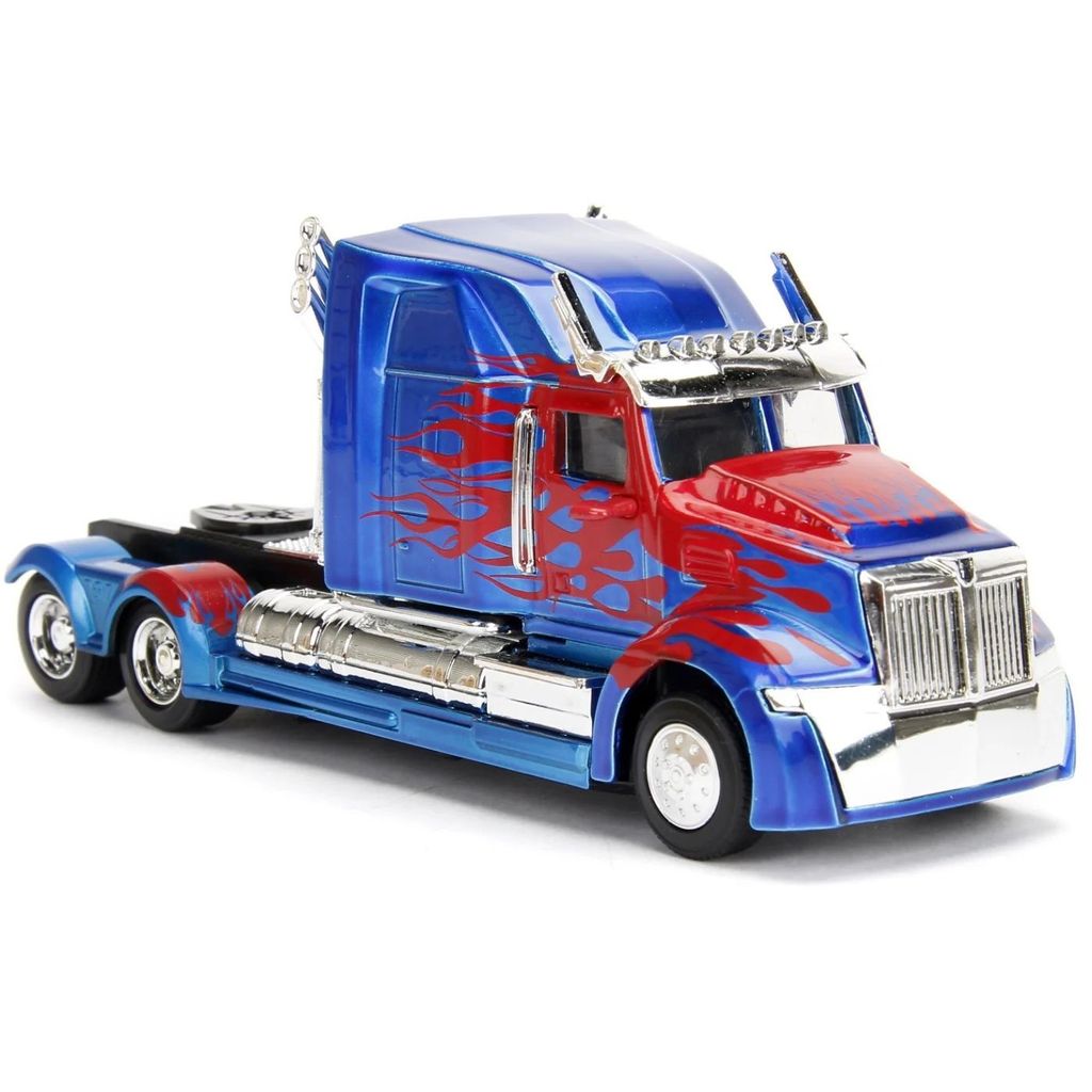 Optimus Prime fra Transformers / Western Star 5700XE fra Jada Toys. Længden på trucken/traktoren (Optimus Prime) er 15 cm.