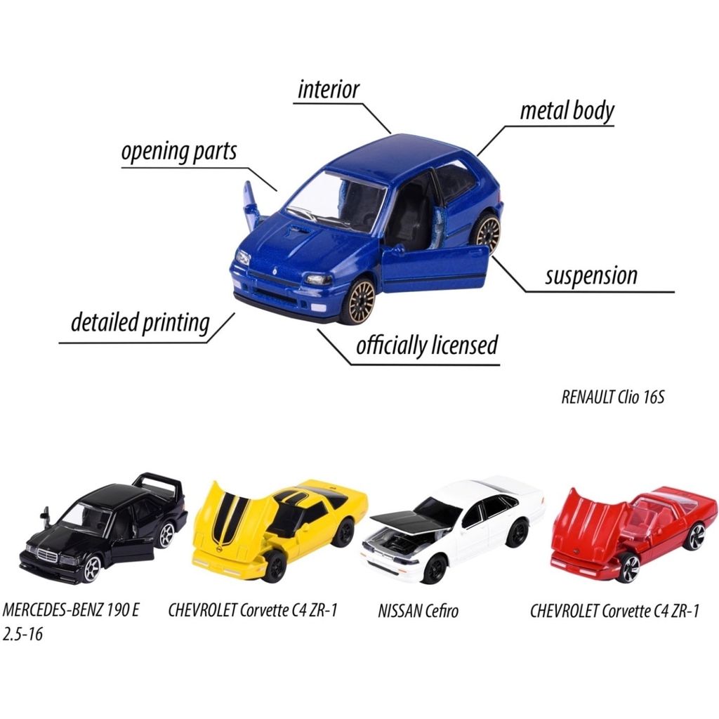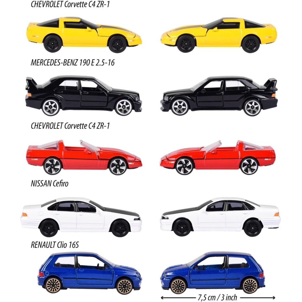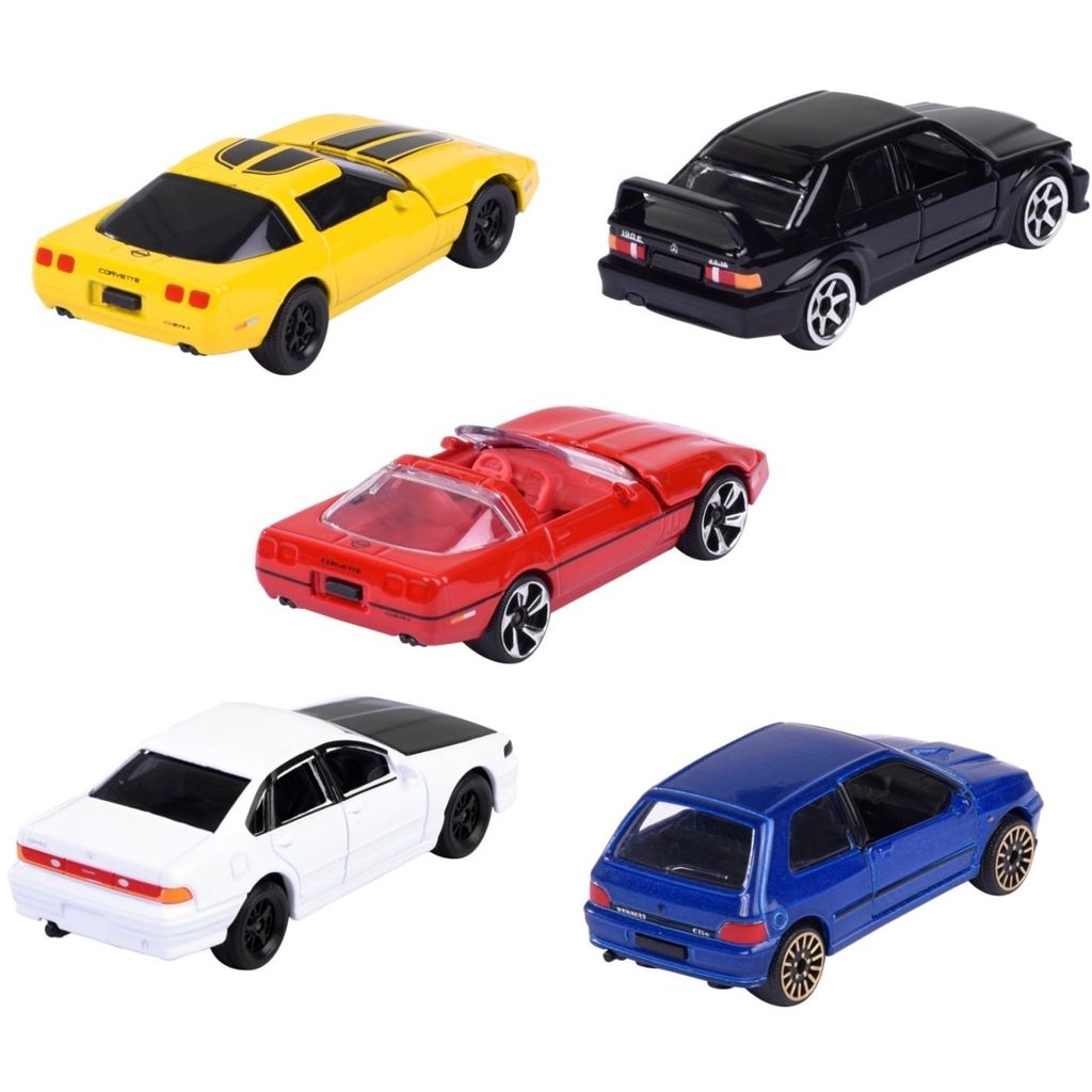 5-pak med legetøjsbiler fra Majorette. De medfølgende biler er alle fra 90'erne og som anført nedenfor.