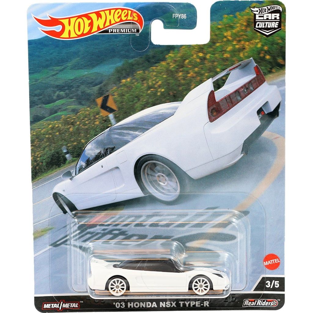 Vit ’03 Honda NSX Type-R från Hot Wheels. Bilen ingår i serien Car Culture: Mountain Drifters från 2022 där denna "släde" är bil 3 av 5.