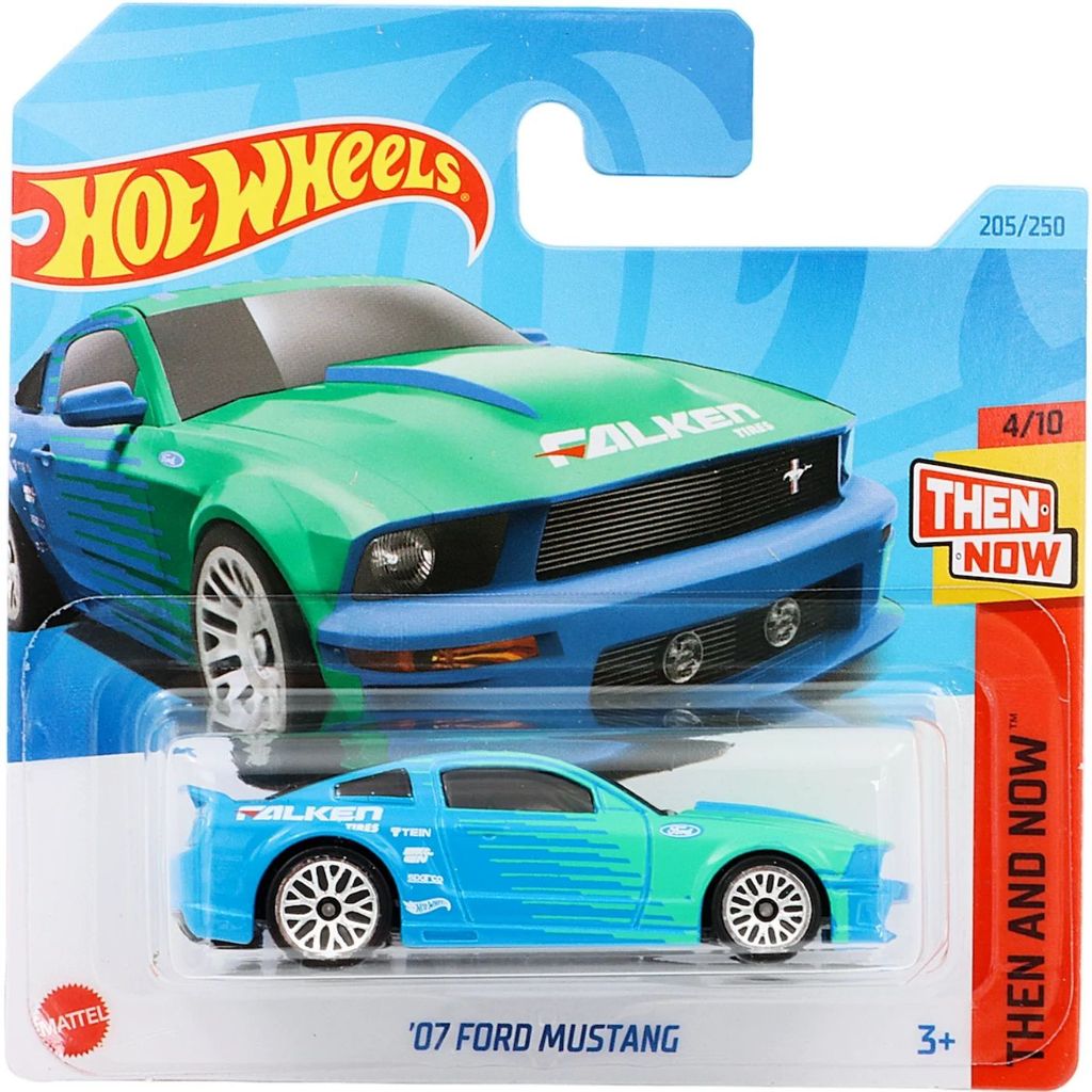 ’07 Ford Mustang med Falken-livery från Hot Wheels och serien Then And Now där denna leksaksbil är bil nummer 4/10. Bilen är nummer 205/250 från 2023 och har ett short card (5785). Bilens artikelnummer är HKJ43. Just denna bil ingår i bland annat L case 2023.