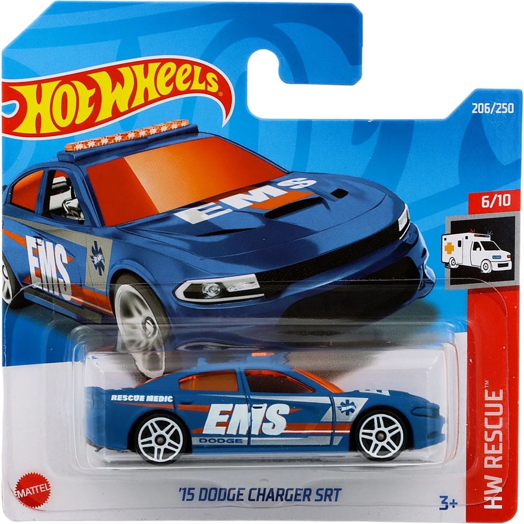 ?15 Dodge Charger SRT från Hot Wheels och serien HW Rescue där denna leksaksbil är bil nummer 6/10. Bilen är nummer 206/250 från 2022 och har ett short card (5785).