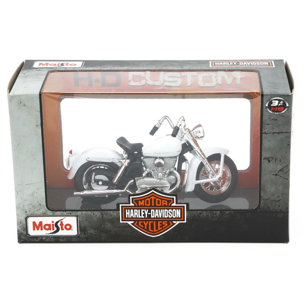 Harley-Davidson 1952 K Model i vitt från tillverkaren Maisto i skala 1:18.