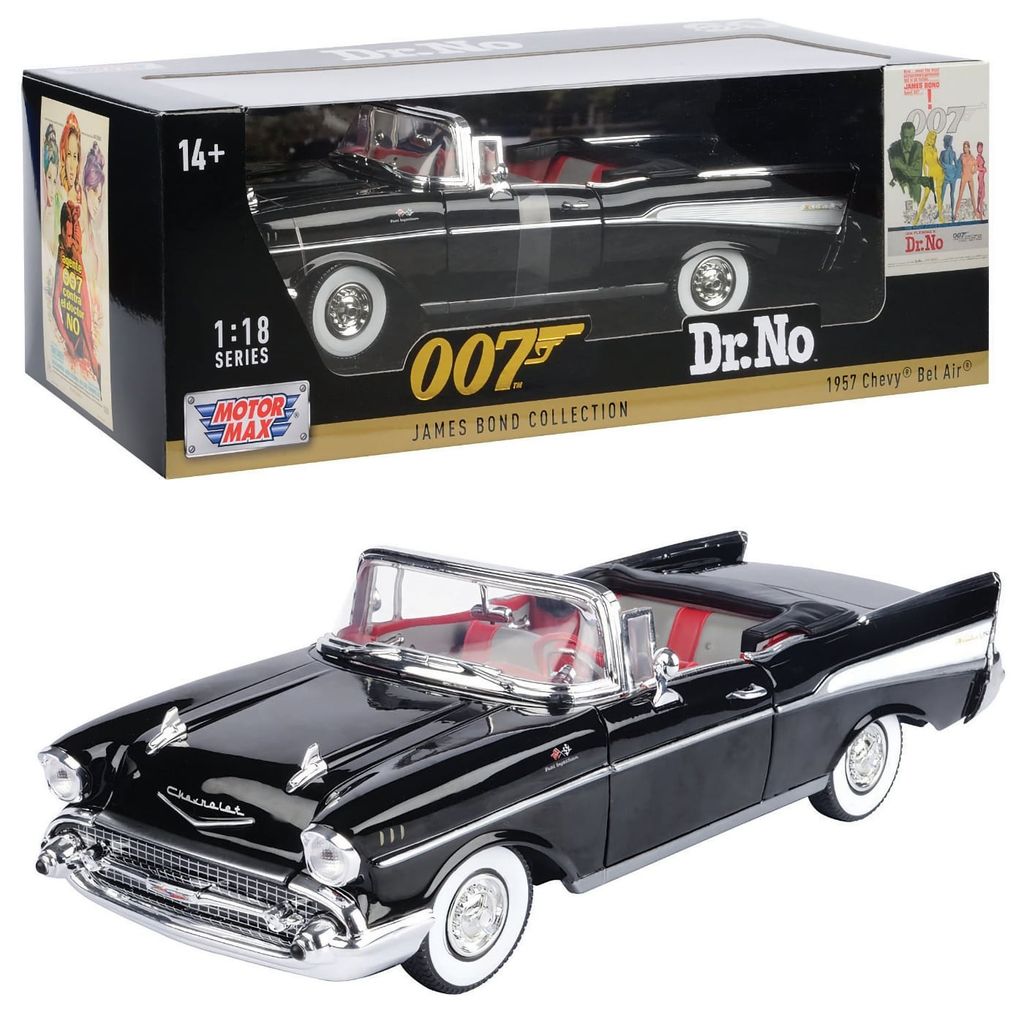 Svart 1957 Chevy Bel Air från James Bond-filmen Dr. No (Agent 007 med rätt att döda) från Motormax i skala 1:18 (29 cm).