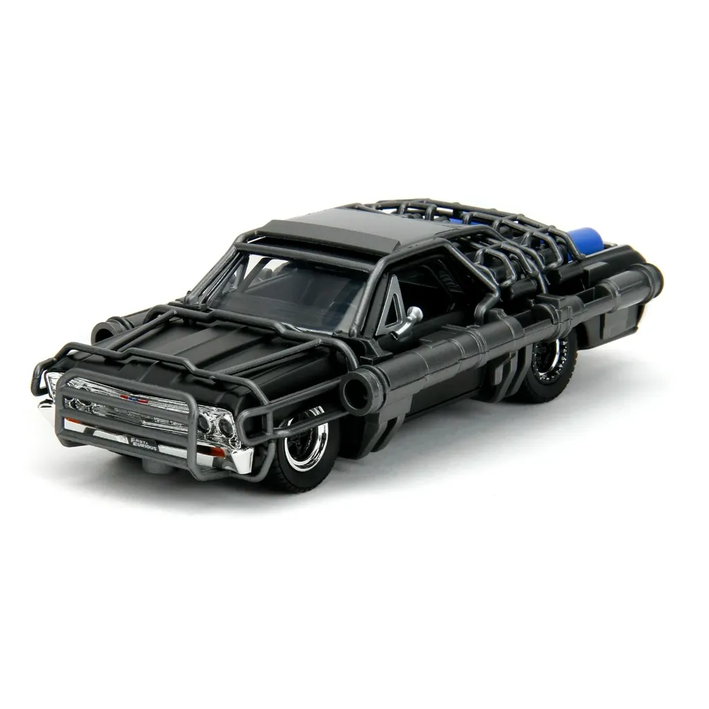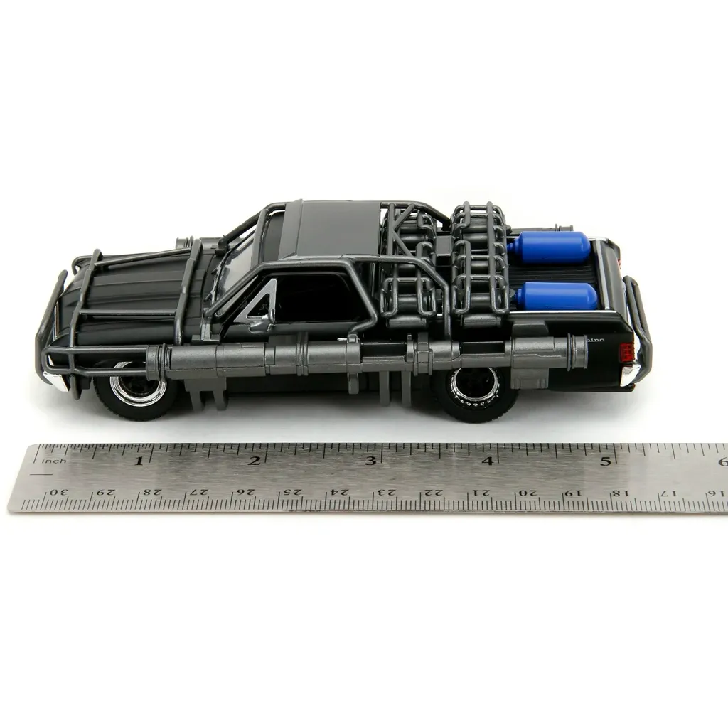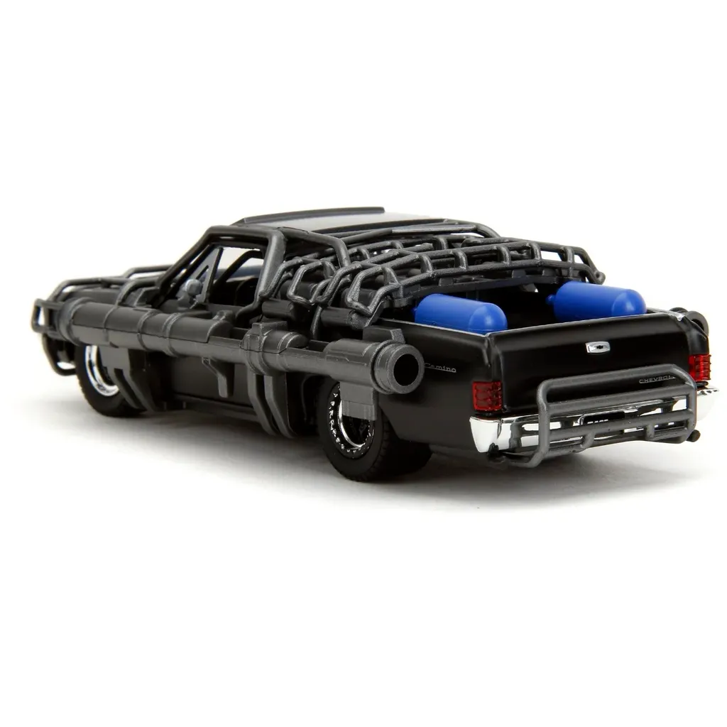 Chevrolet El Camino, årsmodell 1967, från Fast & Furious-filmen Fast X från 2023. Bilen är svart och utrustad med kanoner. Skalan är 1:32 (13 cm).