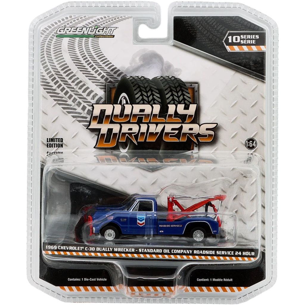 Blå 1969 Chevrolet C-30 Dually Wrecker från GreenLight i skala 1:64 (längd 8 cm). Bilen ingår i serien Dually Drivers.