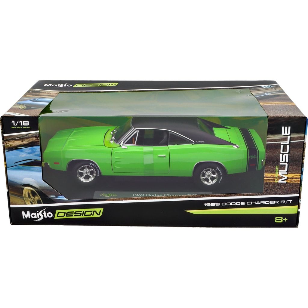 Grön 1969 Dodge Charger R/T som modellbil från Maisto i skala 1:18 (30 cm).