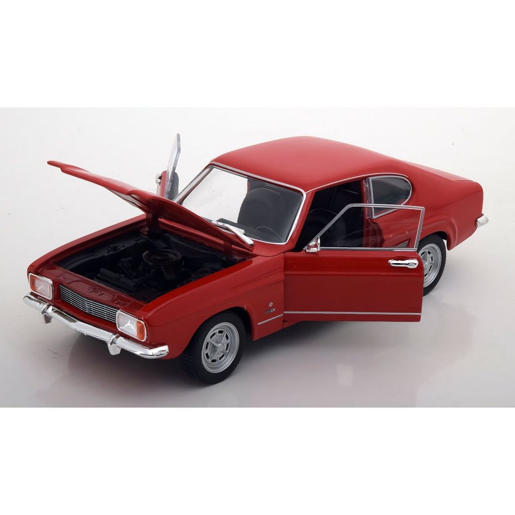 Röd 1969 Ford Capri från Welly och serien NEX Models i skala 1:24. Öppningsbara dörrar och motorhuv.